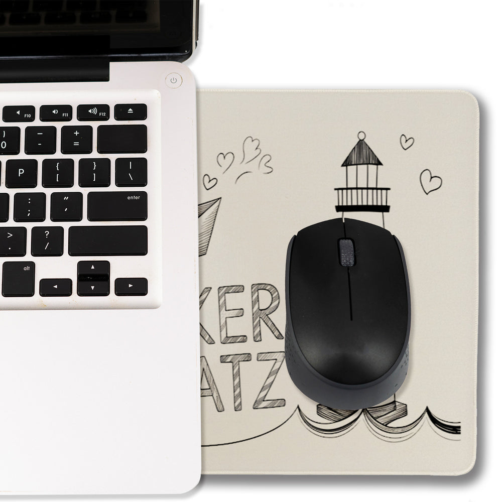 - Die Maritim ANKER PLATZ Schreibtischunterlage begeistert mit einem monochromatischen Design voller maritimer Symbole. Im Mittelpunkt steht eine Holzkiste, verziert mit Herzmustern, auf einer Welle. Ein Leuchtturm und das Wort "Meer" in eleganter Schreibschrift wecken Urlaubsgefühle. Die Herzsymbole im Hintergrund versprühen maritime Romantik und Liebe.