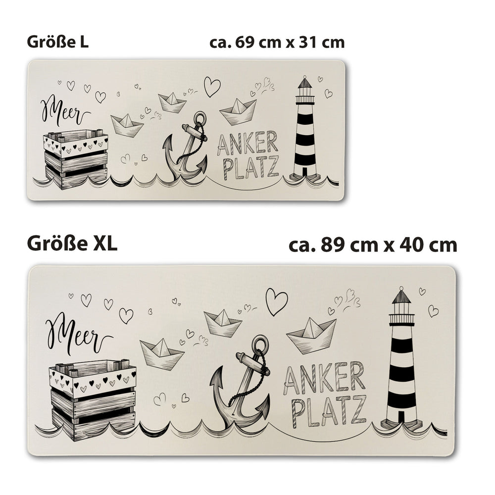 - 1x Maritim ANKER PLATZ Schreibtischunterlage 69x31cm XXL Mauspad mit Herzmotiven in der gewählten Größe