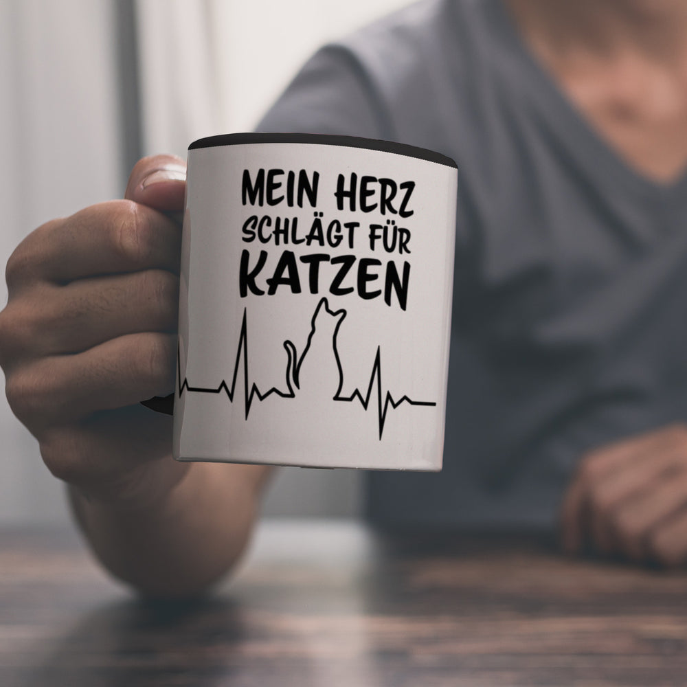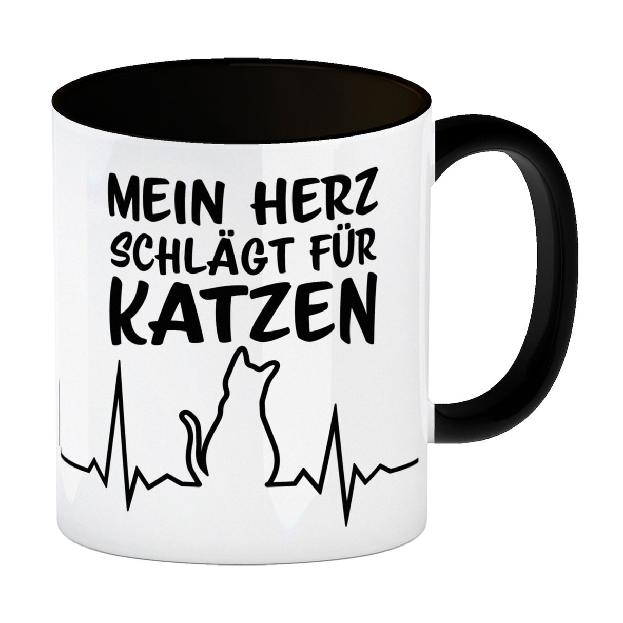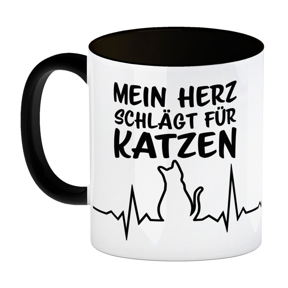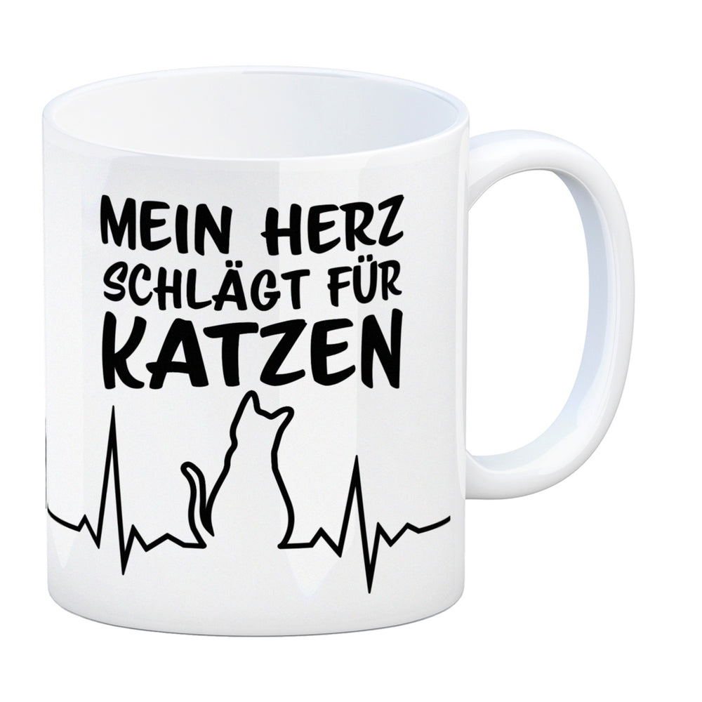 • 1x Mein Herz schlägt für Katzen Kaffeebecher mit süßem EKG Motiv in der gewählten Ausführung