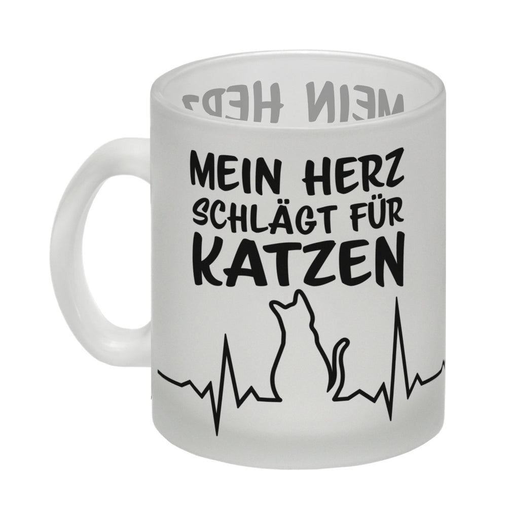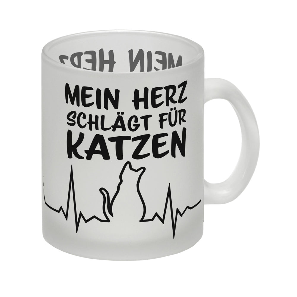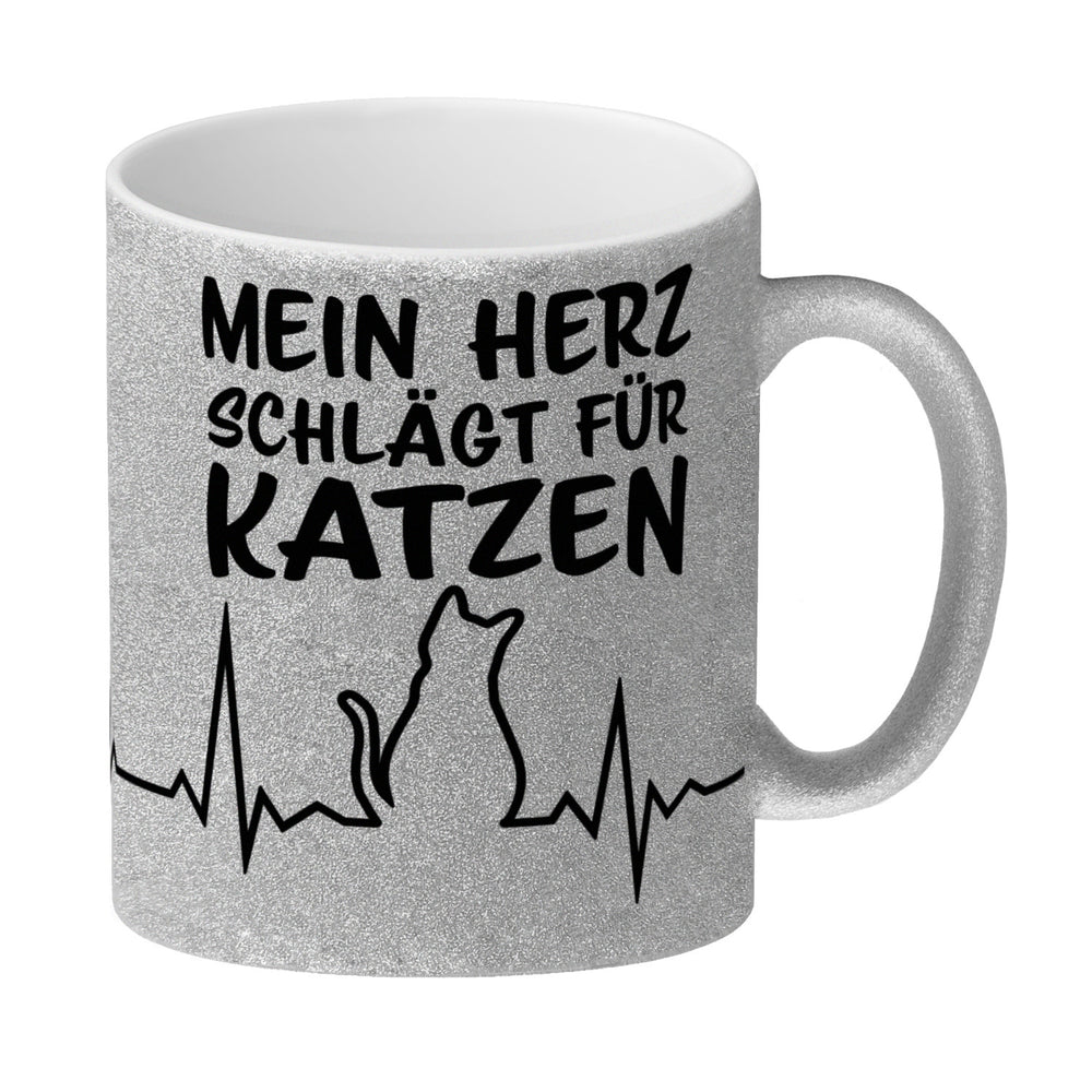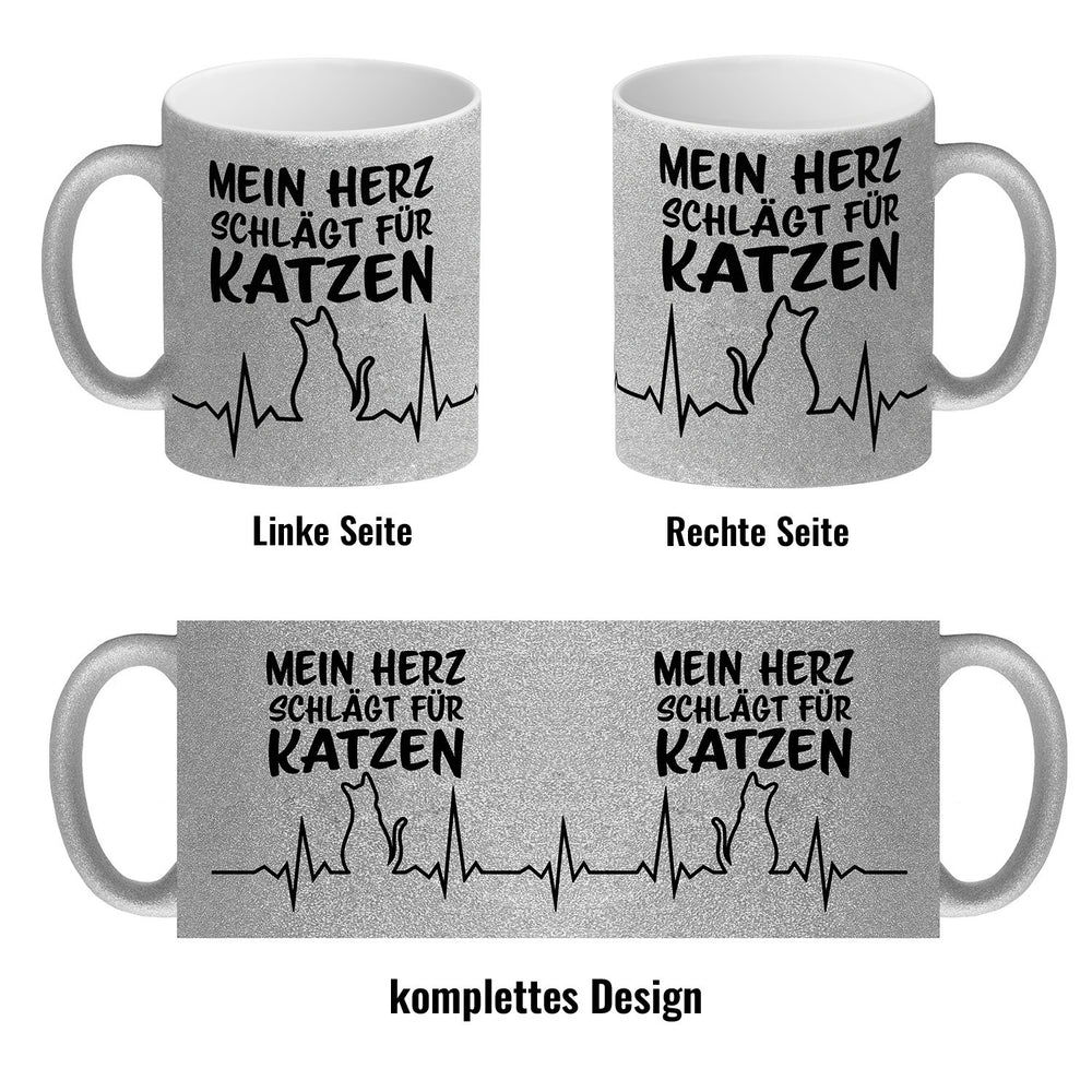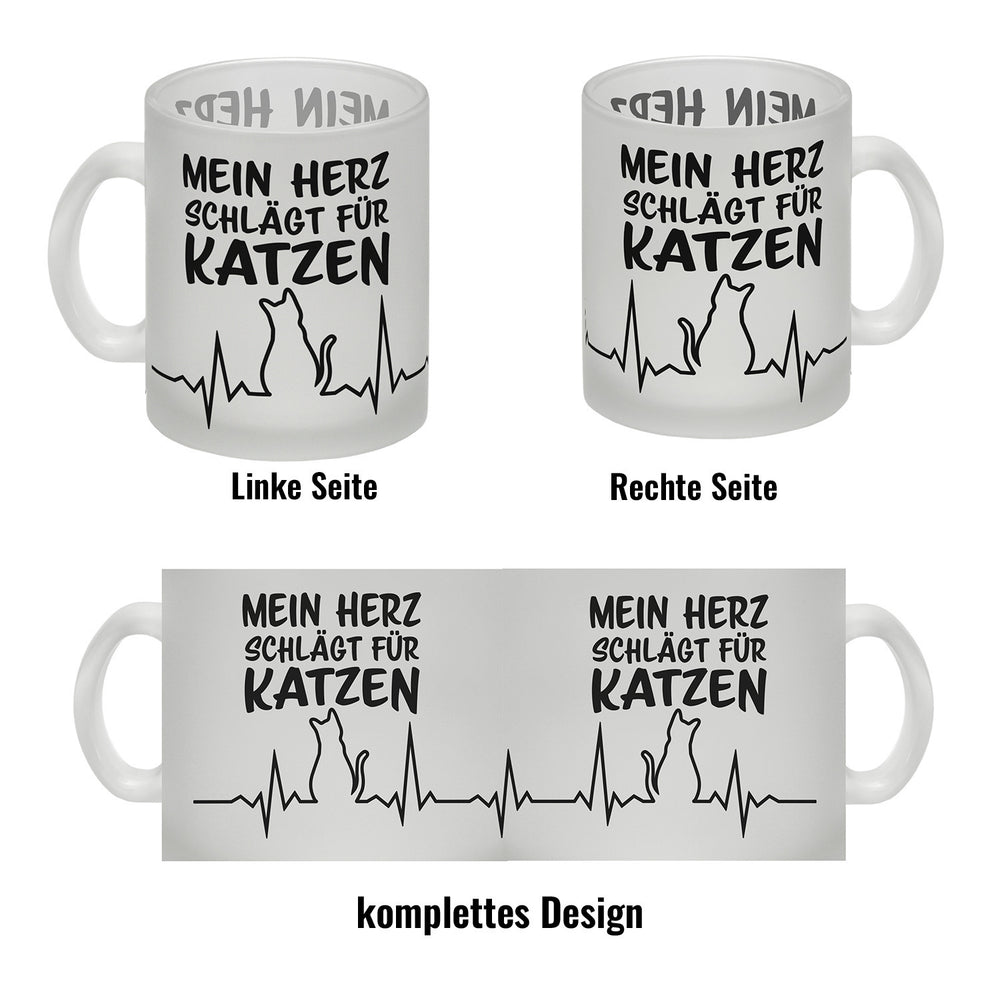 • 1x Mein Herz schlägt für Katzen Kaffeebecher mit süßem EKG Motiv in der gewählten Ausführung