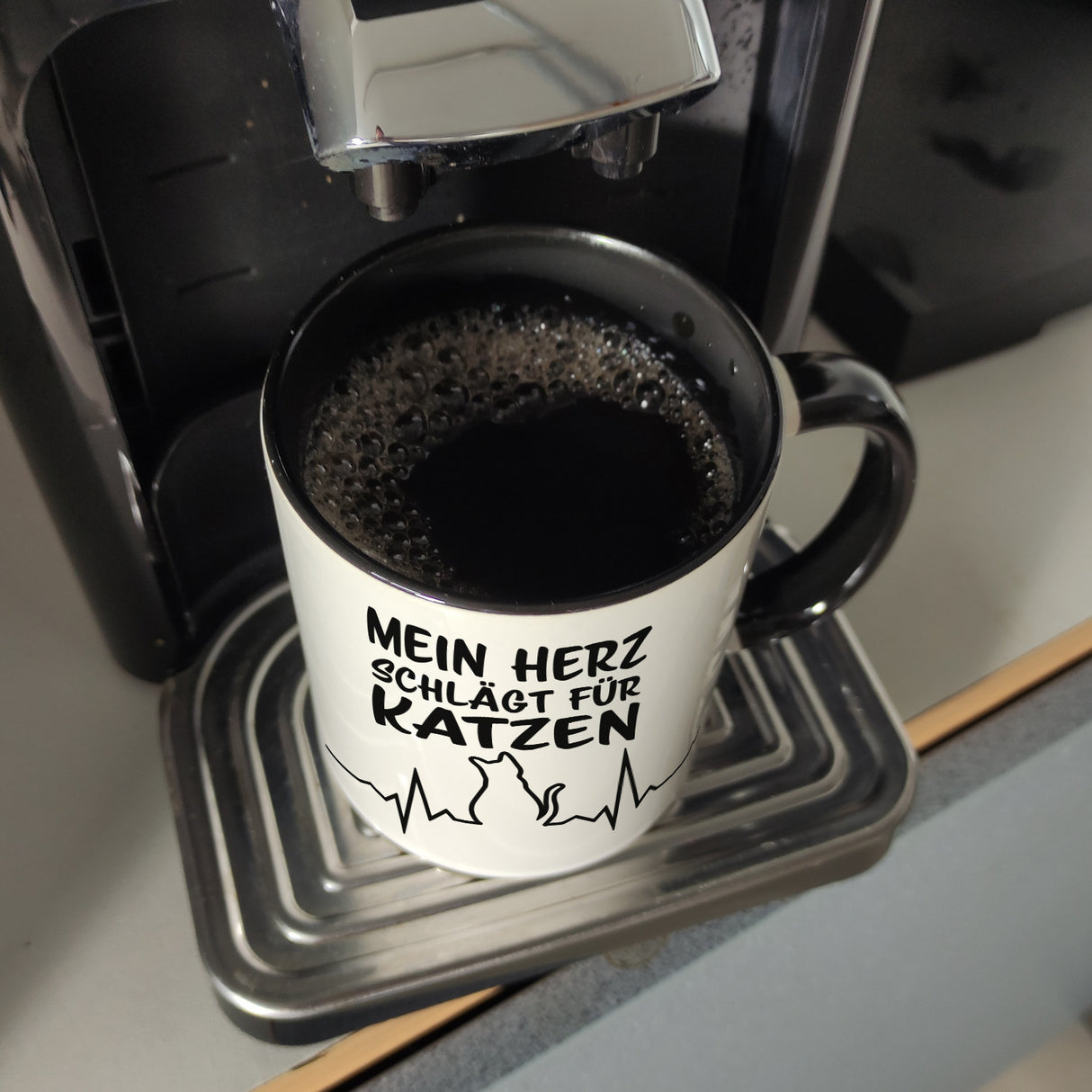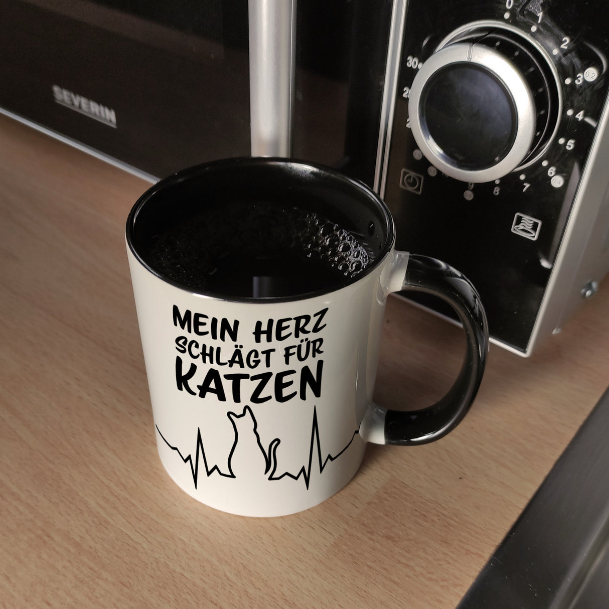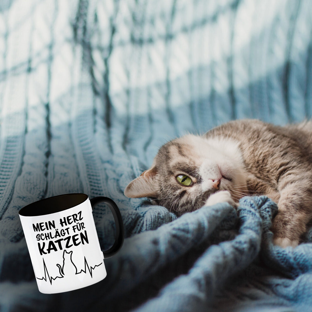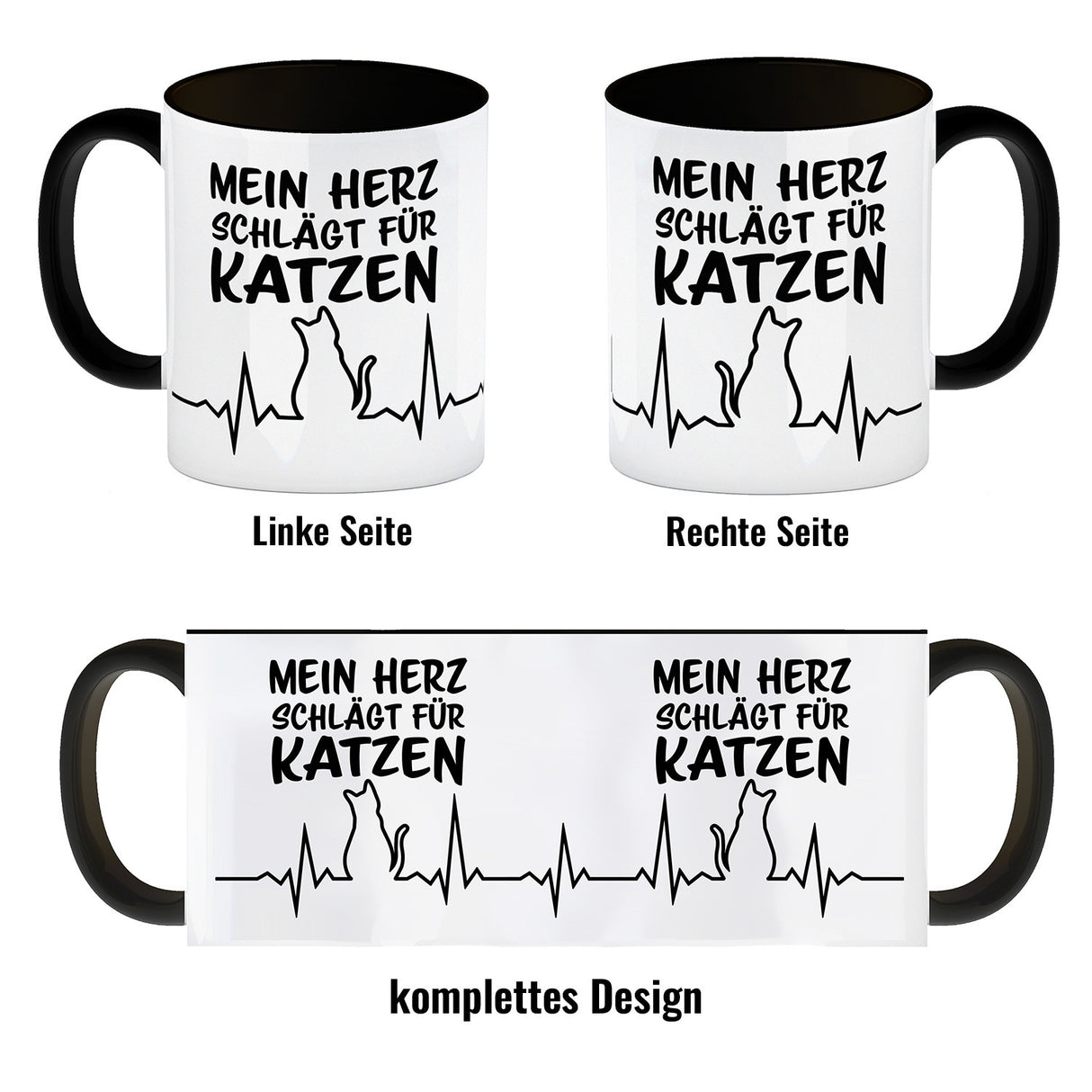 • 1x Mein Herz schlägt für Katzen Kaffeebecher mit süßem EKG Motiv in der gewählten Ausführung
