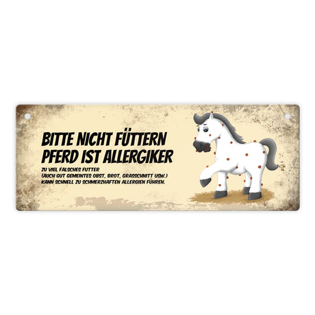 Metallschild mit weißem Pferd Motiv und Spruch: Bitte nicht füttern - Allergiker