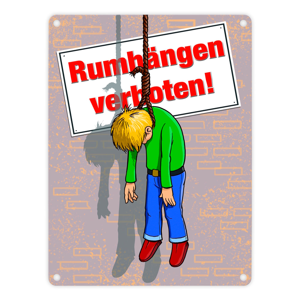 Metallschild Rumhängen verboten! Galgenhumor Henkersknoten erhängt Comic
