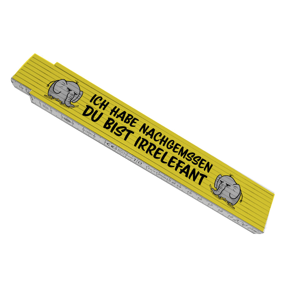 Meterstab aus Holz mit lustigem Comic-Elefanten - Ich hab nachgemessen du bist Irrelefant