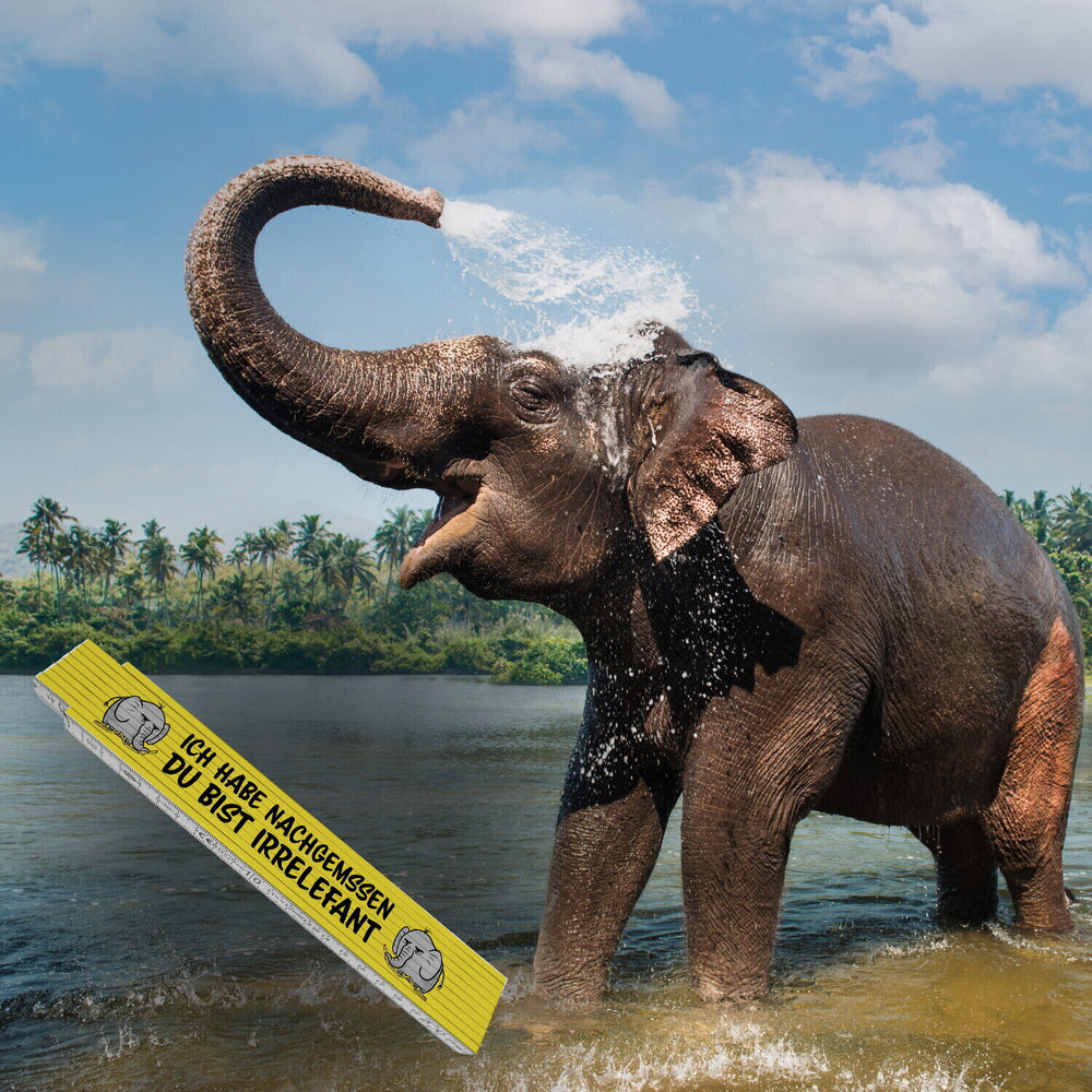 Meterstab aus Holz mit lustigem Comic-Elefanten - Ich hab nachgemessen du bist Irrelefant ist auf Lager und wird versandt, sobald es wieder verfügbar ist