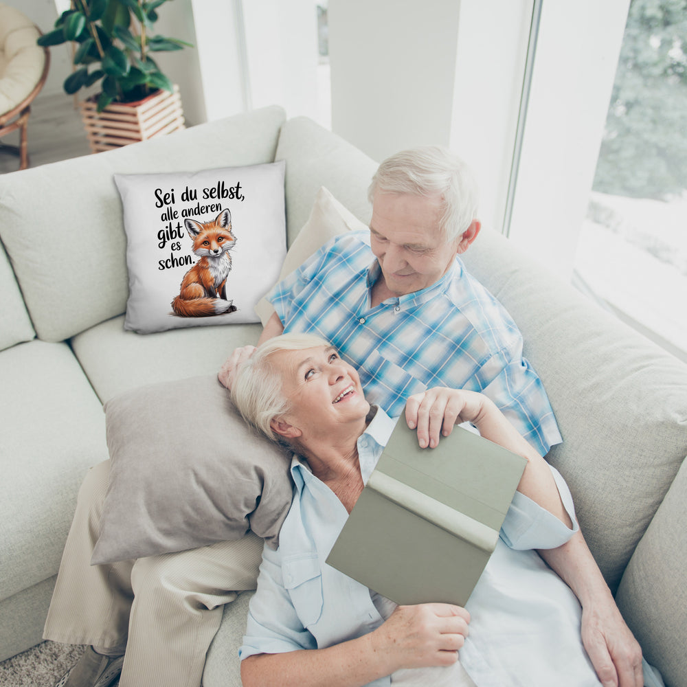 Neugieriger Fuchs Kissen Spruch sei du selbst