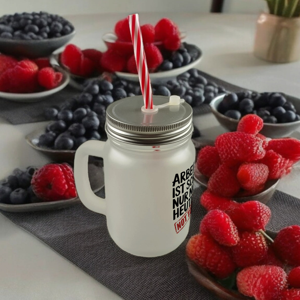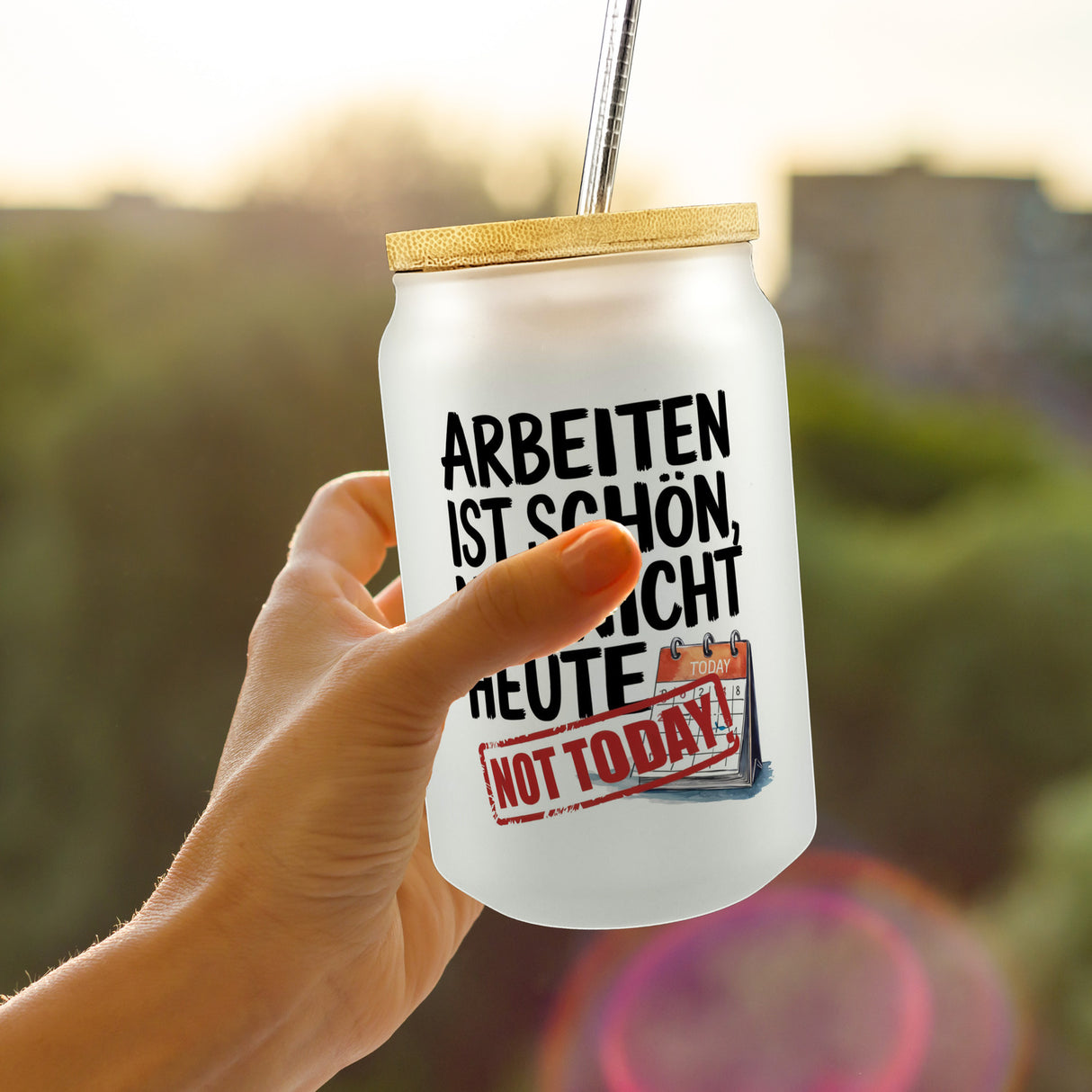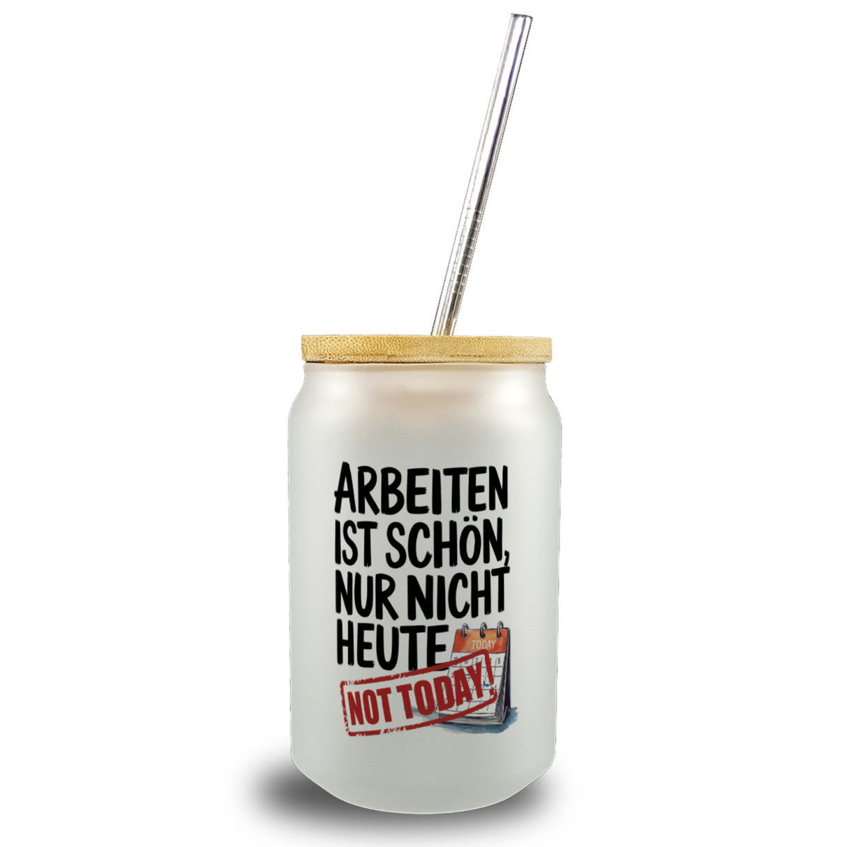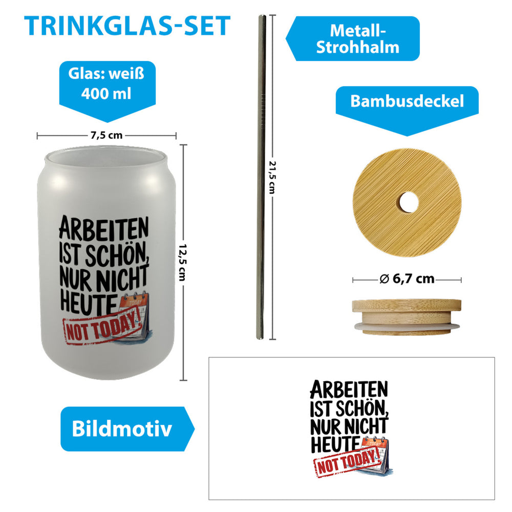 Nicht heute Arbeiten Trinkglas mit Bambusdeckel Arbeiten ist schön