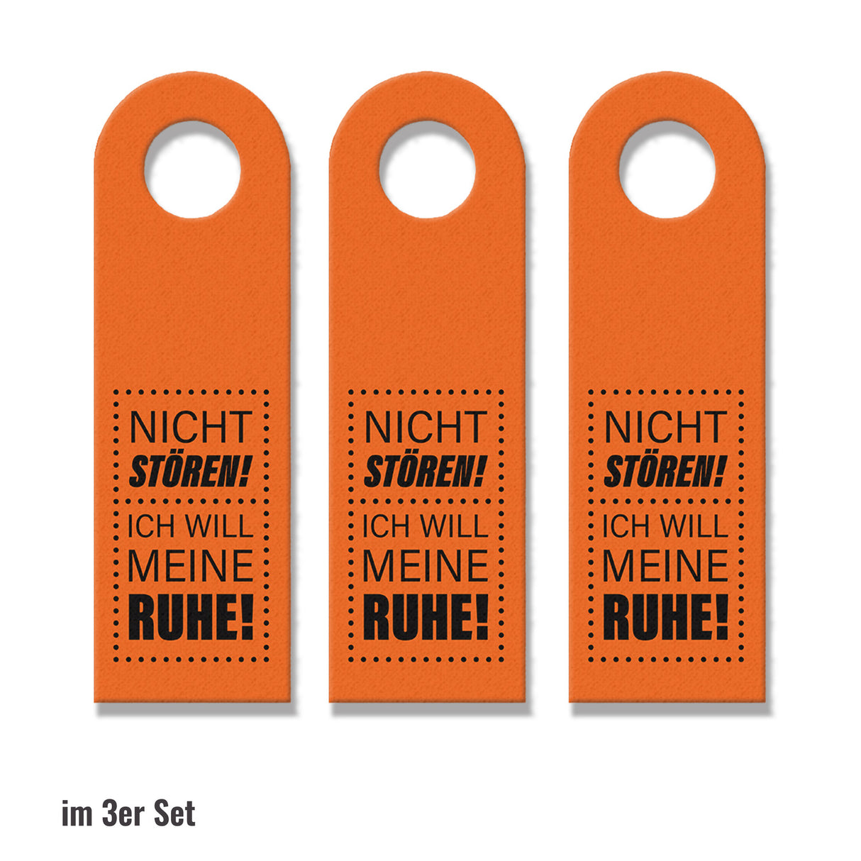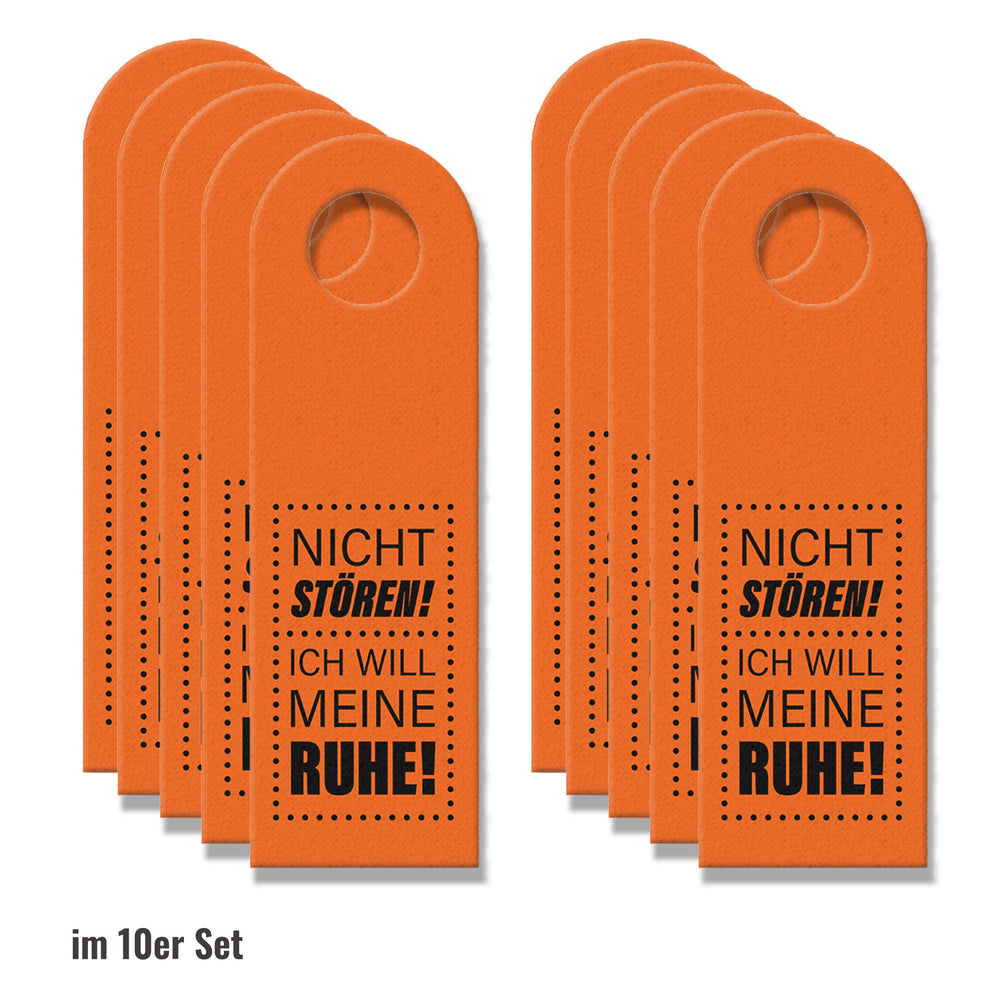 Der Nicht-Stören-Türhänger in Orange ist die ideale Lösung, um ungestört zu sein. Hergestellt aus hochwertigem Filz und mit einem praktischen Loch für die Türklinke, kannst du deine Ruhe bekommen, wann immer du sie brauchst. Der auffallende Spruch „Nicht stören! Ich will meine Ruhe!“ lässt deine Mitmenschen wissen, dass du nicht gestört werden willst. Erhältlich ist der Türhänger als Einzelstück oder im 3er- und 10er-Sparset, jeweils mit Sorgfalt in Handarbeit hergestellt in unserer Türhänger-Manufaktur in Deutschland. Egal ob für zu Hause oder im Büro: Der Nicht-Stören-Türhänger in Orange ist die perfekte Lösung für alle, die Ruhe und Entspannung suchen.