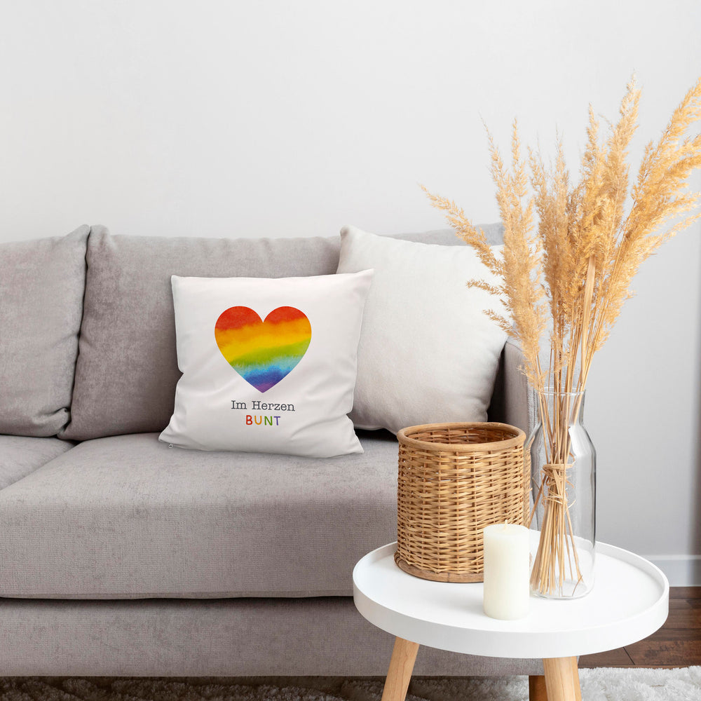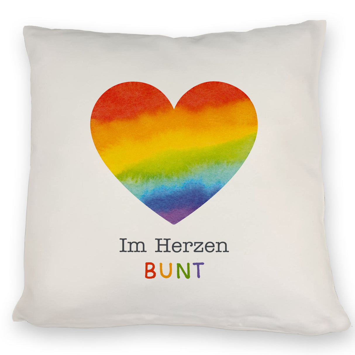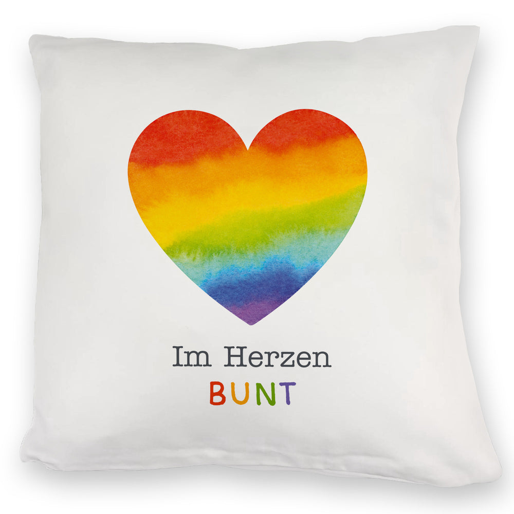 Regenbogenherz Kissen mit Spruch Im Herzen bunt
