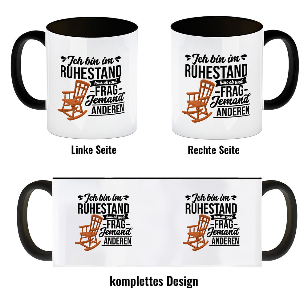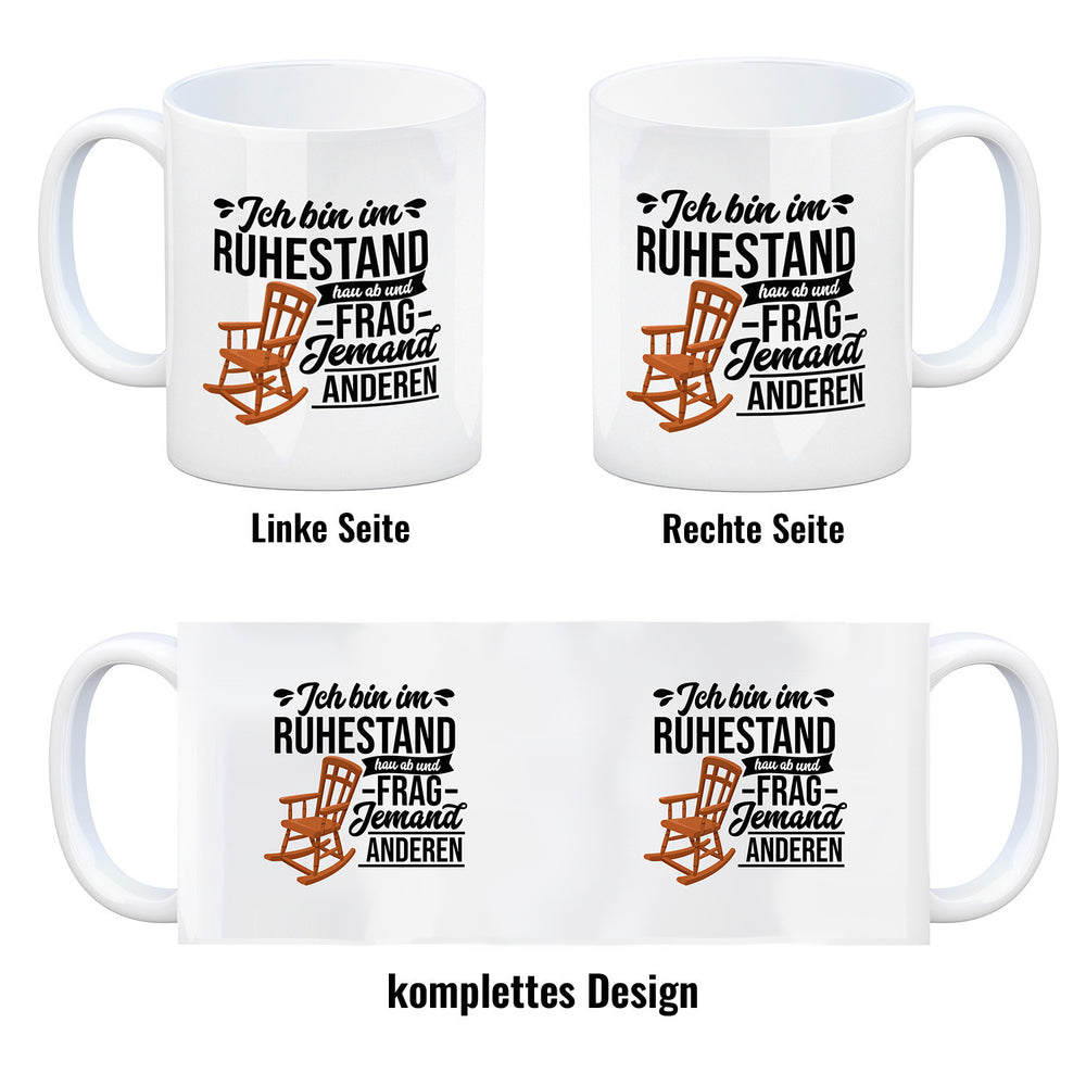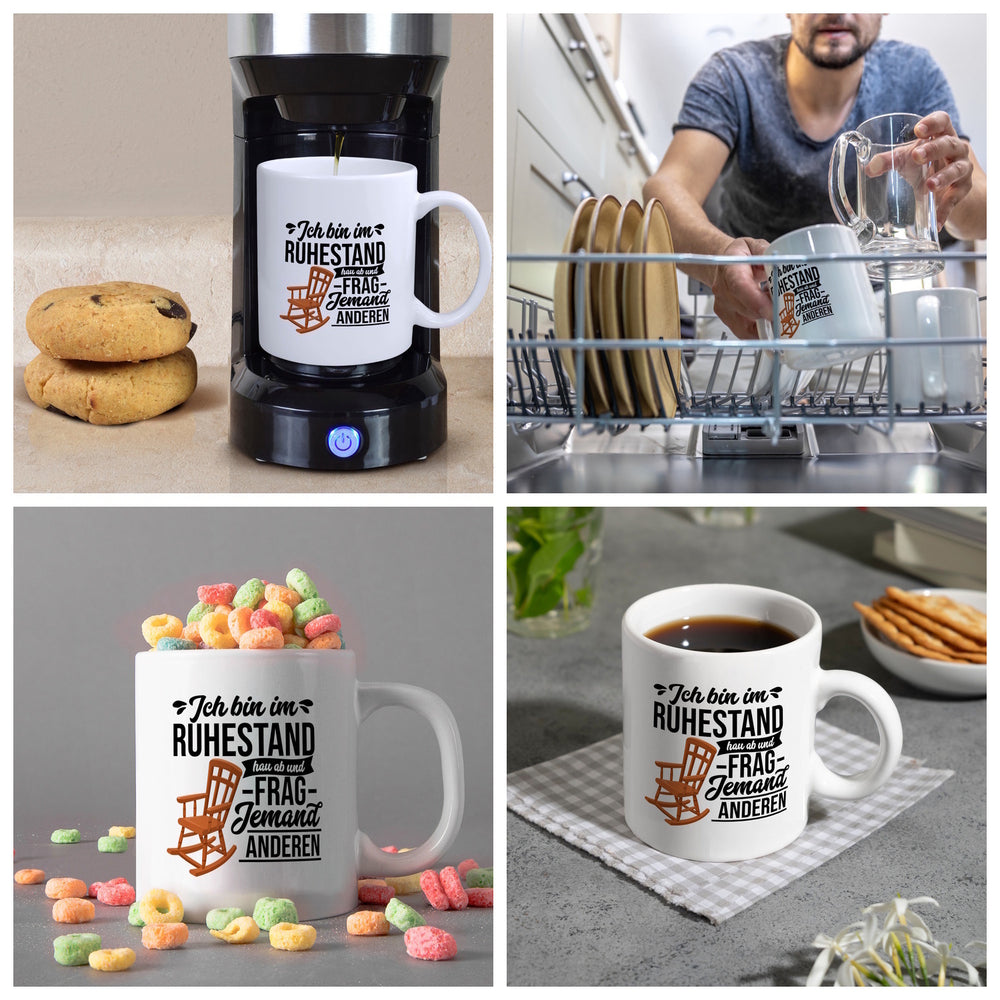 - Genieße Deinen Kaffee, Tee oder Kakao aus dem Becher. Die "Ruhestand" Tasse ist eine tolle Geschenkidee für Eltern zum Ruhestand. Jetzt Kaffeebecher mit "Ruhestand" Motiv kaufen und Freude verschenken.