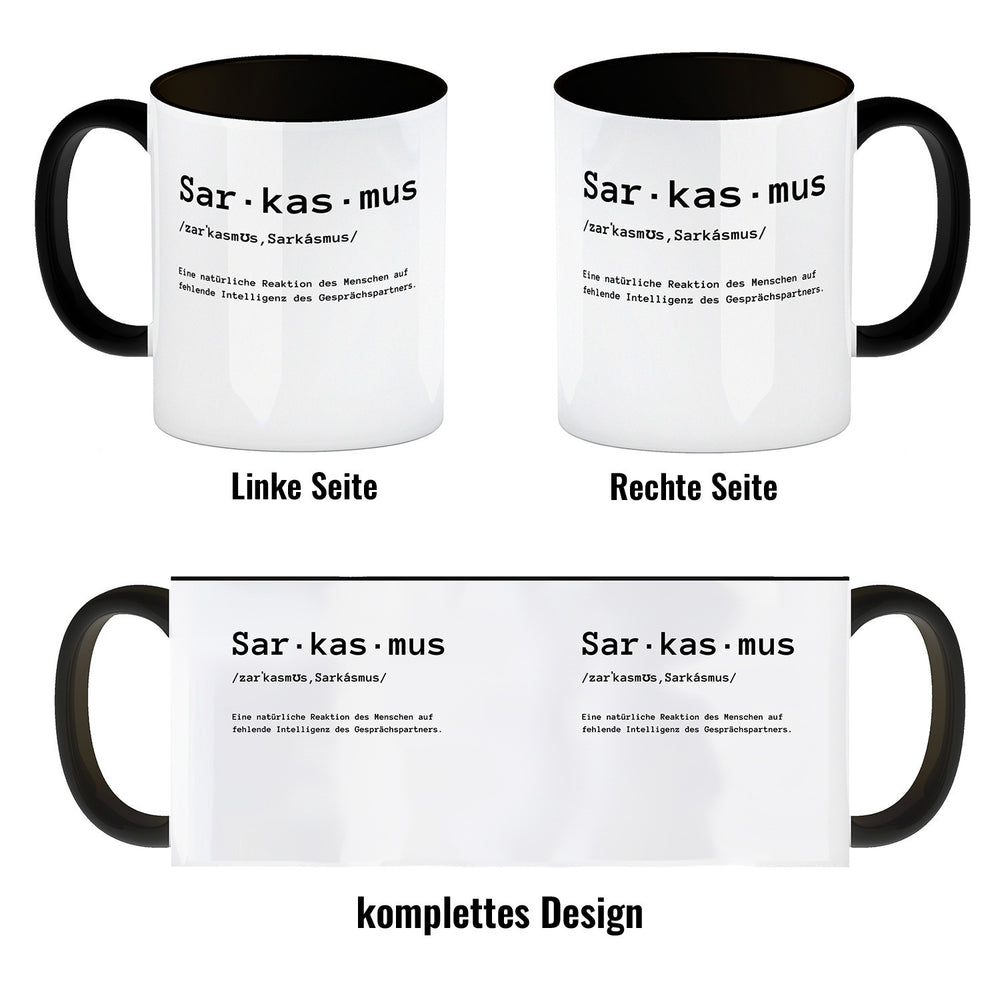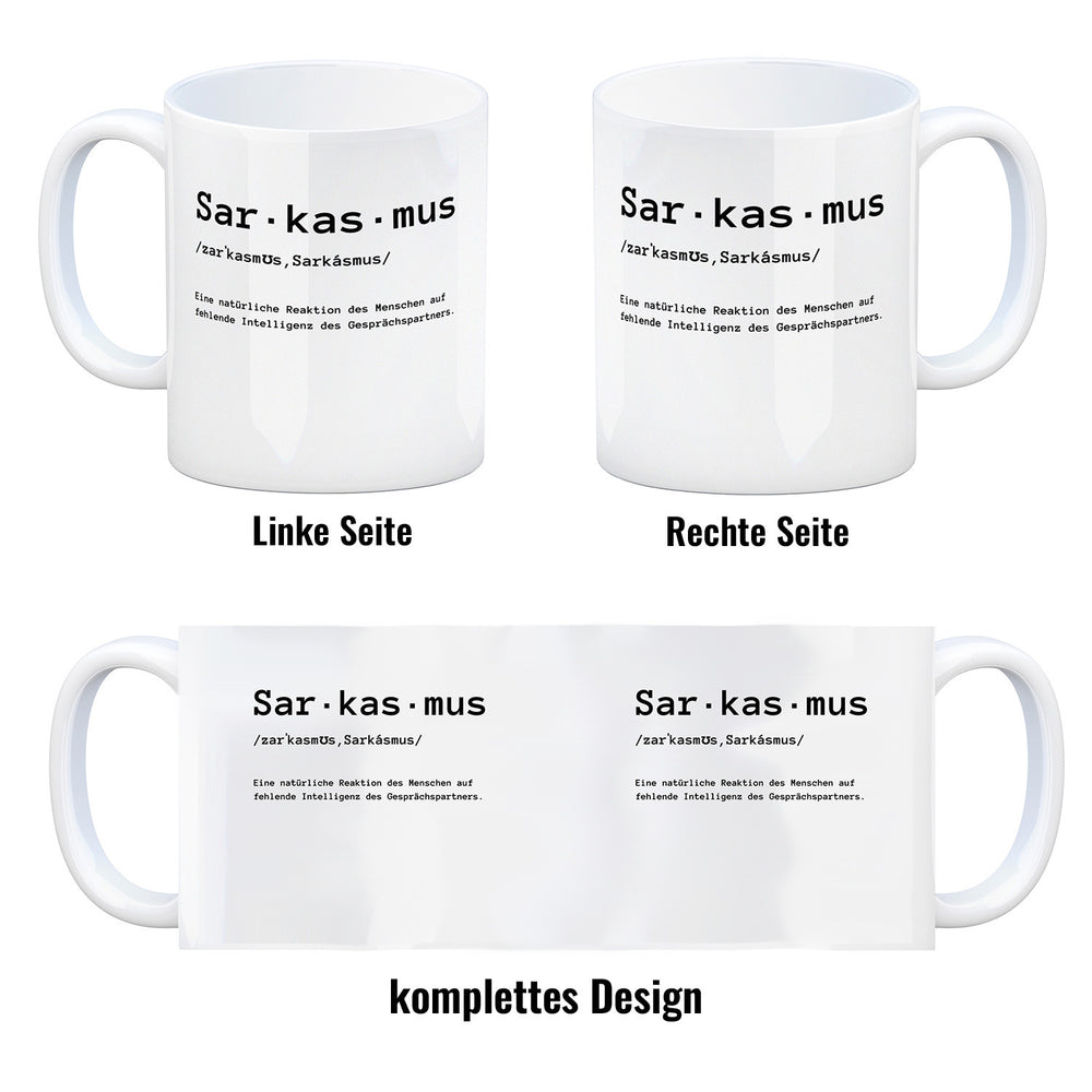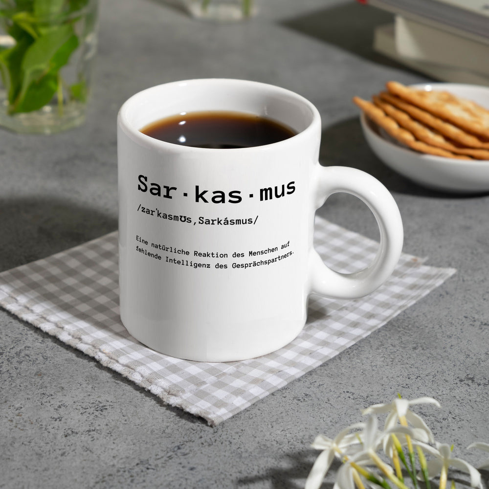 - 1x Sarkasmus Definiton Kaffeebecher mit Spruch in der gewählten Ausführung