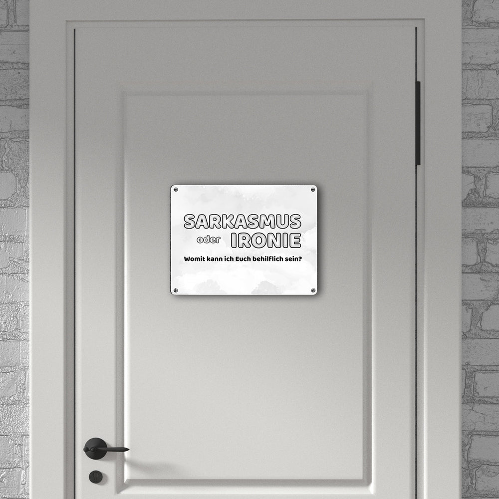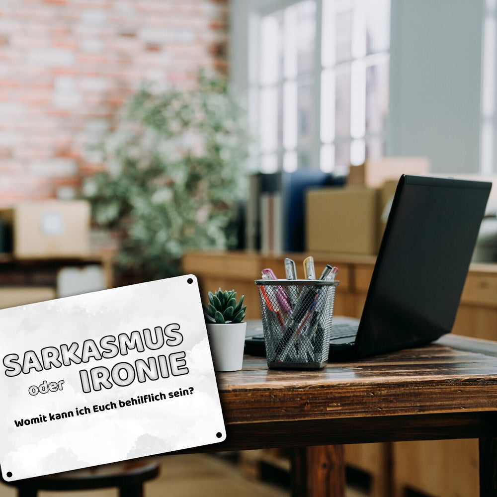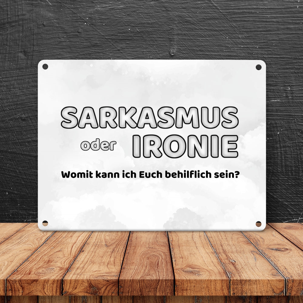 Sarkasmus oder Ironie Metallschild - Womit kann ich Euch behilflich sein
