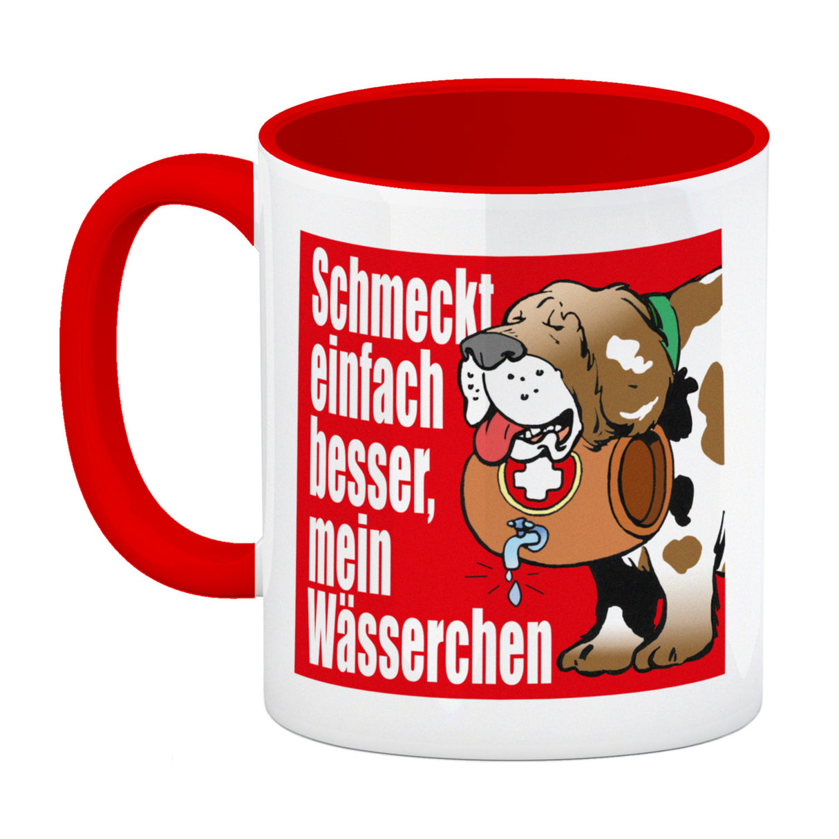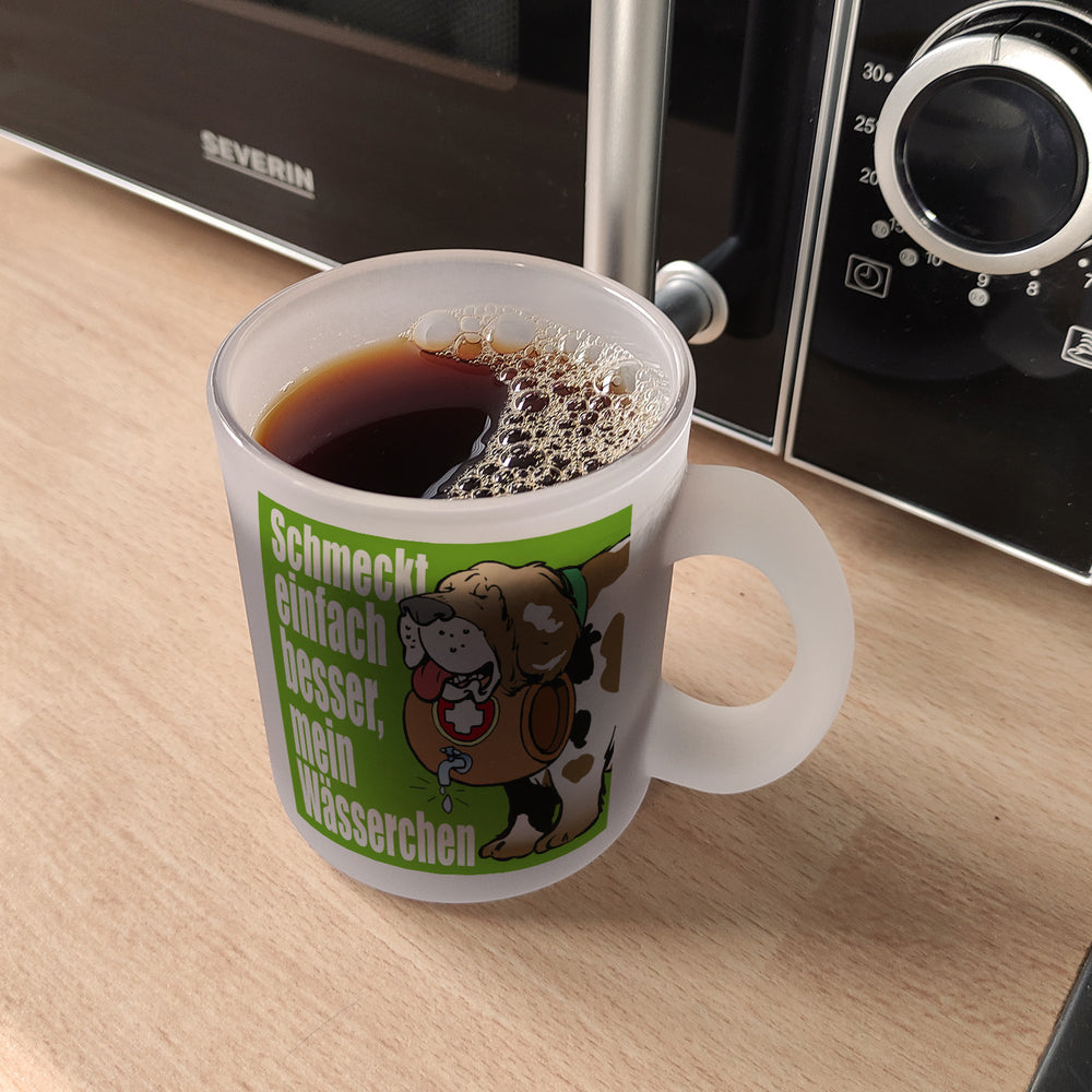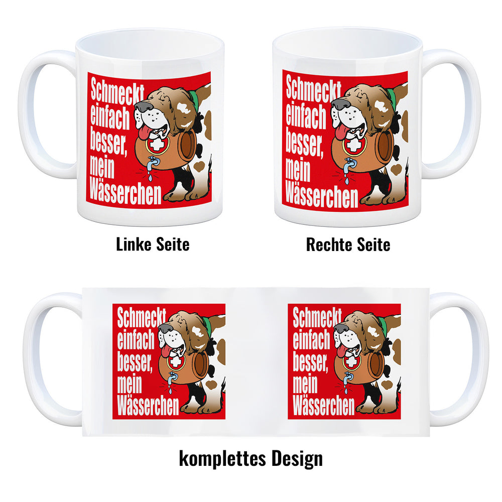 Der Schmeckt einfach besser mein Wässerchen Kaffeebecher in rot ist eine wundervolle Ergänzung für jeden Küchenschrank. Seine zeitlose, niedliche Form und sein hochwertiger Druck mit satten Farben machen ihn zu einem perfekten Geschenk. Unsere Becher werden in Deutschland mit Sorgfalt in Handarbeit hergestellt und stehen als weiße Standardtasse, mit farbigem Henkel und Innenseite, als edle Glastasse oder in der exklusiven Silberedition mit Glitzereffekt zur Auswahl. Mit dem Motiv erinnert er Dich täglich an die schweizer Alpenhunde oder an Deine Arbeit im Skigebiet. Genieße jeden Tag Deinen Kaffee oder Tee aus unserem unverwechselbaren Becher und hol Dir Dein Lieblingsmotiv jetzt!