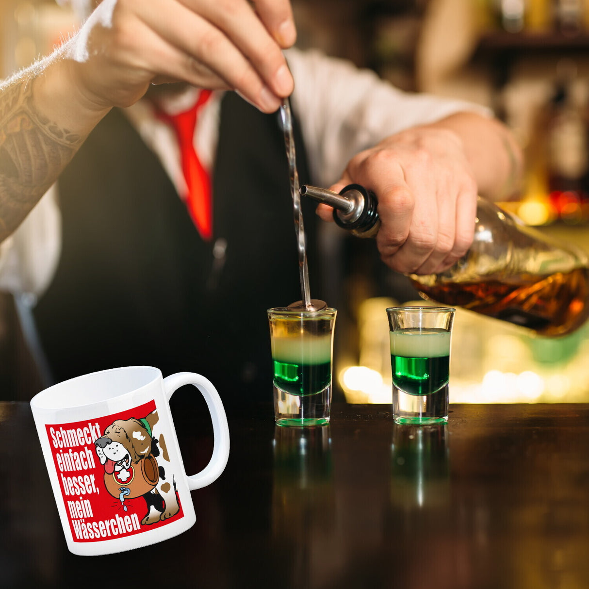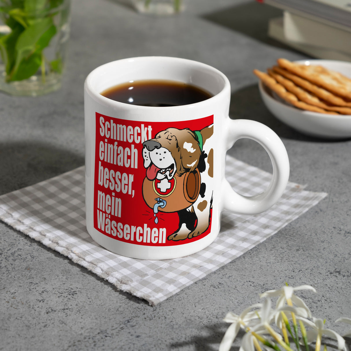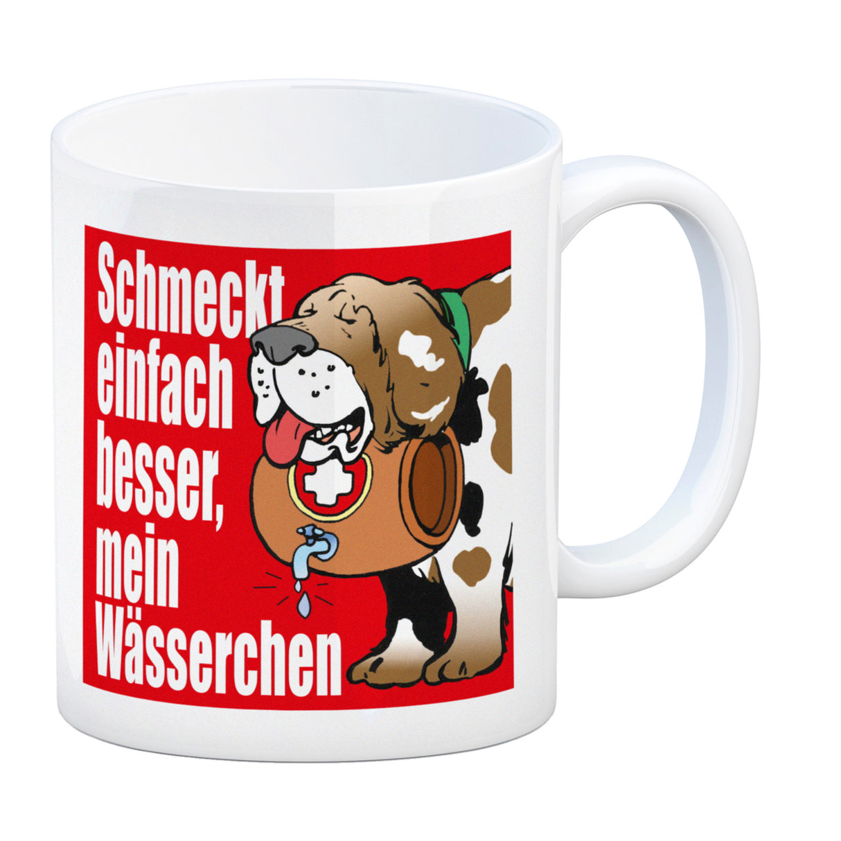 Der Schmeckt einfach besser mein Wässerchen Kaffeebecher in rot ist eine wundervolle Ergänzung für jeden Küchenschrank. Seine zeitlose, niedliche Form und sein hochwertiger Druck mit satten Farben machen ihn zu einem perfekten Geschenk. Unsere Becher werden in Deutschland mit Sorgfalt in Handarbeit hergestellt und stehen als weiße Standardtasse, mit farbigem Henkel und Innenseite, als edle Glastasse oder in der exklusiven Silberedition mit Glitzereffekt zur Auswahl. Mit dem Motiv erinnert er Dich täglich an die schweizer Alpenhunde oder an Deine Arbeit im Skigebiet. Genieße jeden Tag Deinen Kaffee oder Tee aus unserem unverwechselbaren Becher und hol Dir Dein Lieblingsmotiv jetzt!