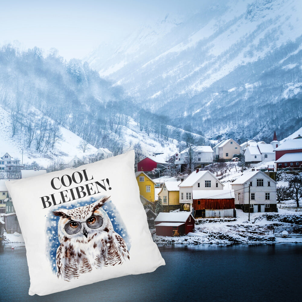 • 1x Schneeeule mit Sonnenbrille Cool bleiben Kissen in der gewählten Ausführung