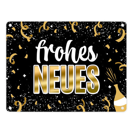Frohes neues Jahr Metallschild mit Sekt und Feuerwerk