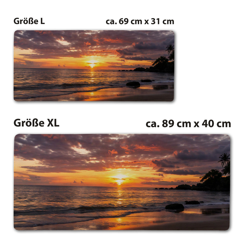 - 1x Sonnenuntergang am Meer Schreibtischunterlage 69x31cm XXL Mauspad in der gewählten Größe