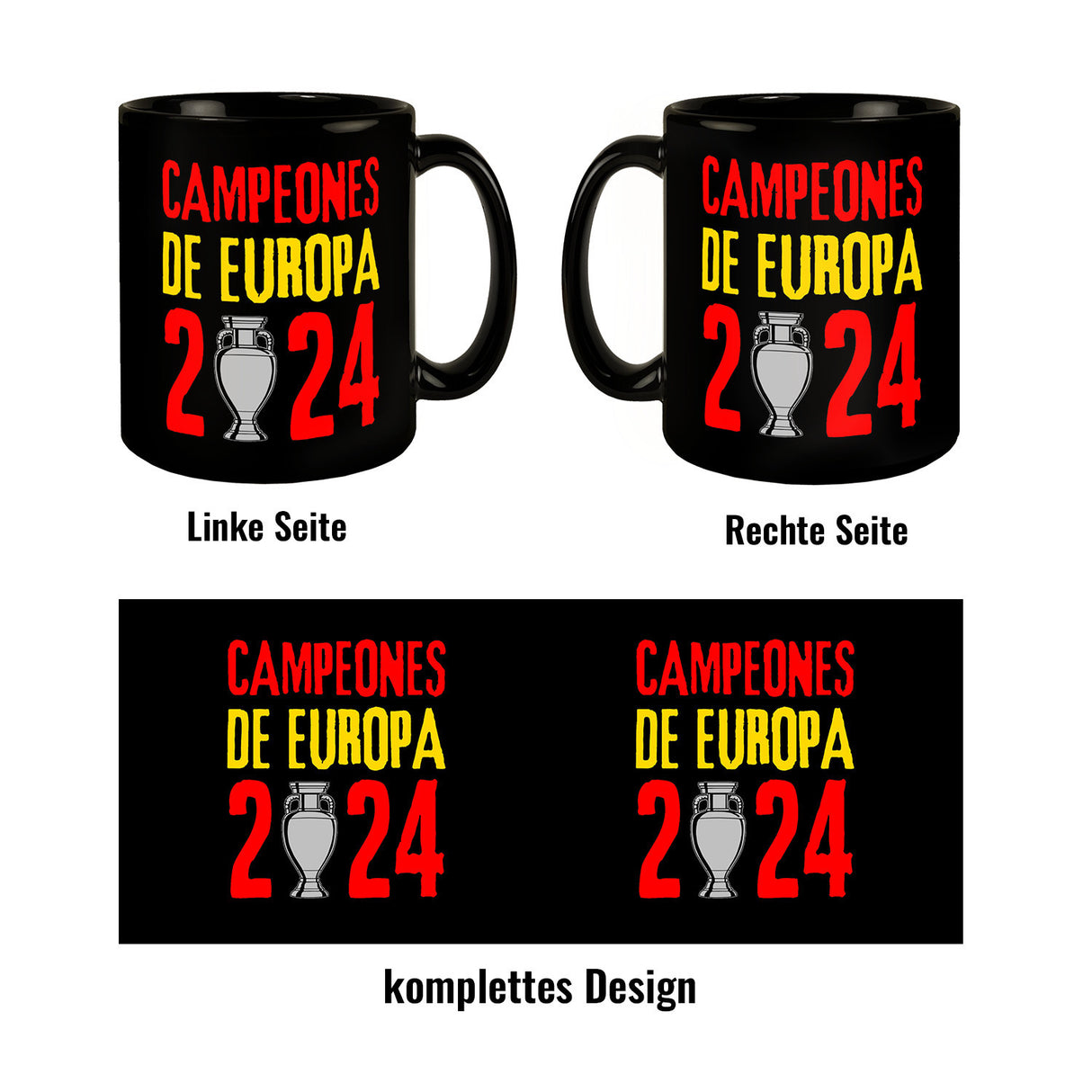 - Lieferumfang: 1x Spanien Europameister 2024 Tasse in Schwarz mit Spruch Campeones de Europa 2024