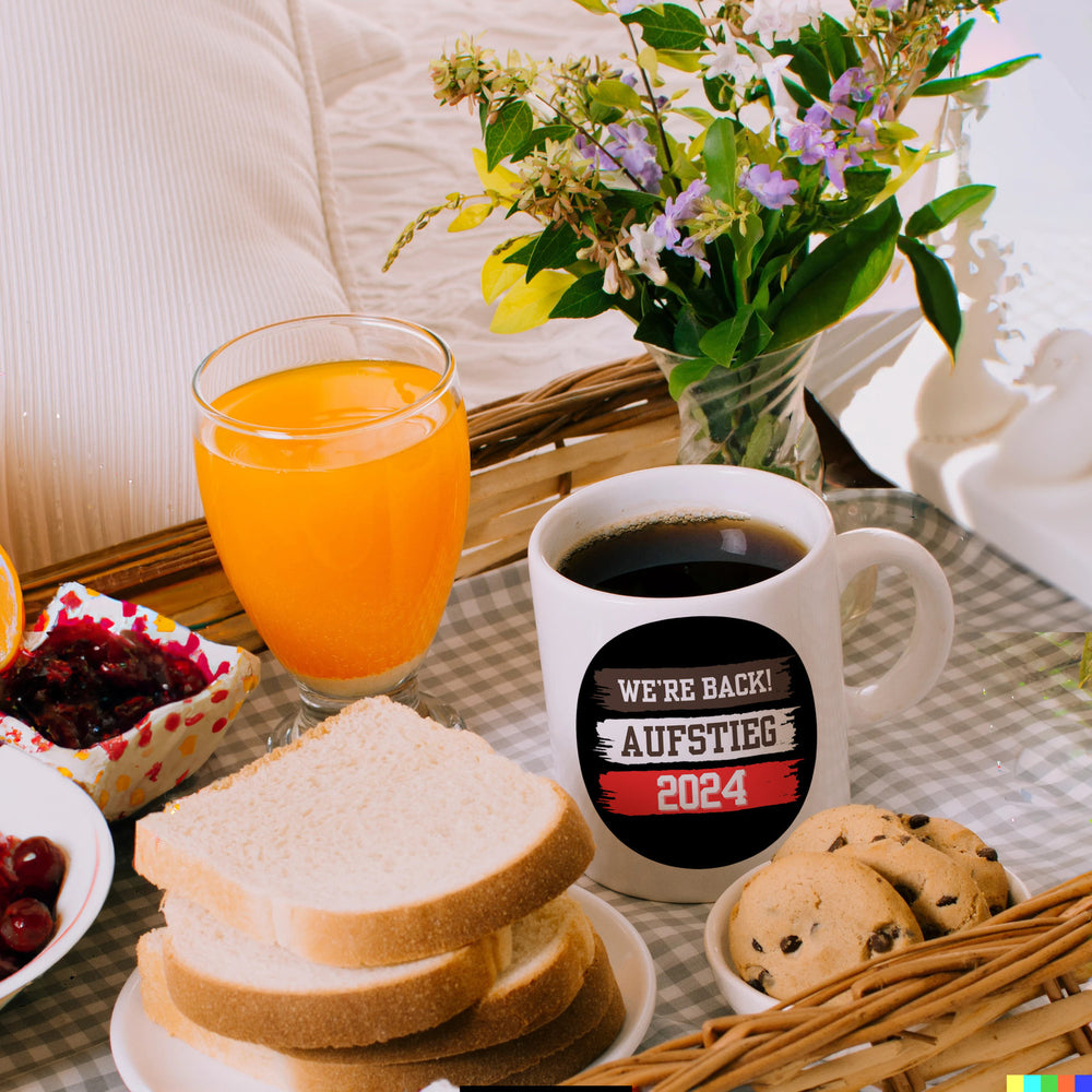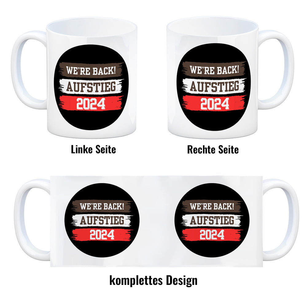 St. Pauli Aufstieg 2024 Kaffeebecher mit Spruch We're back
