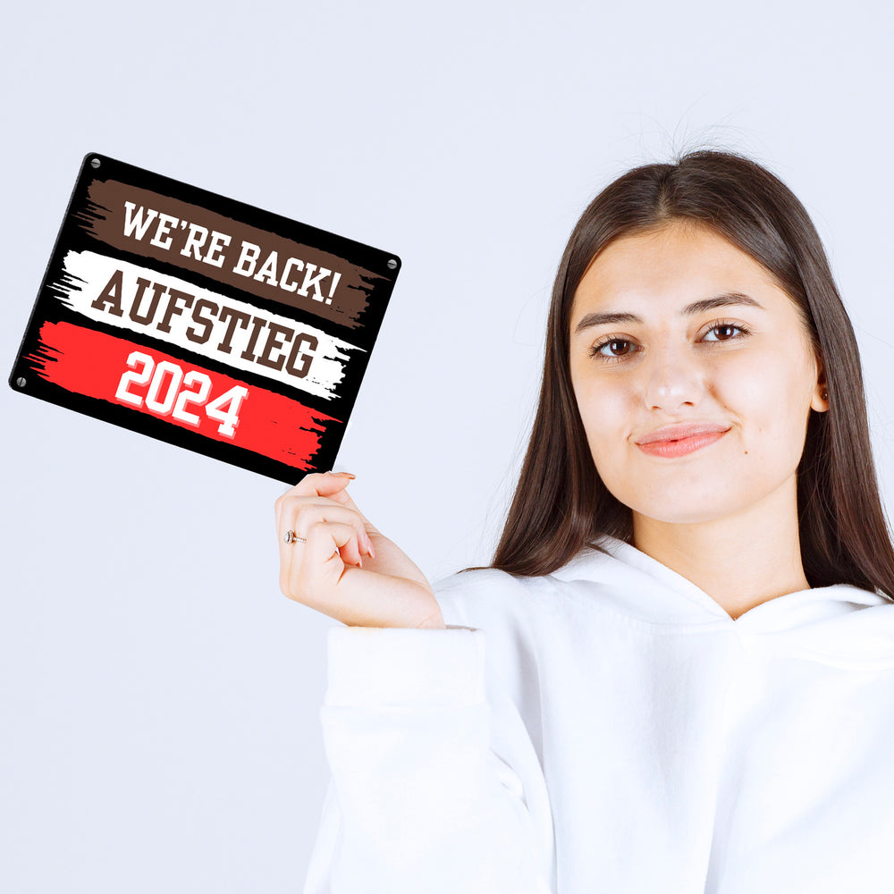 - 1x St. Pauli Aufstieg 2024 Metallschild in 15x20 cm mit Spruch We're back in der gewählten Größe