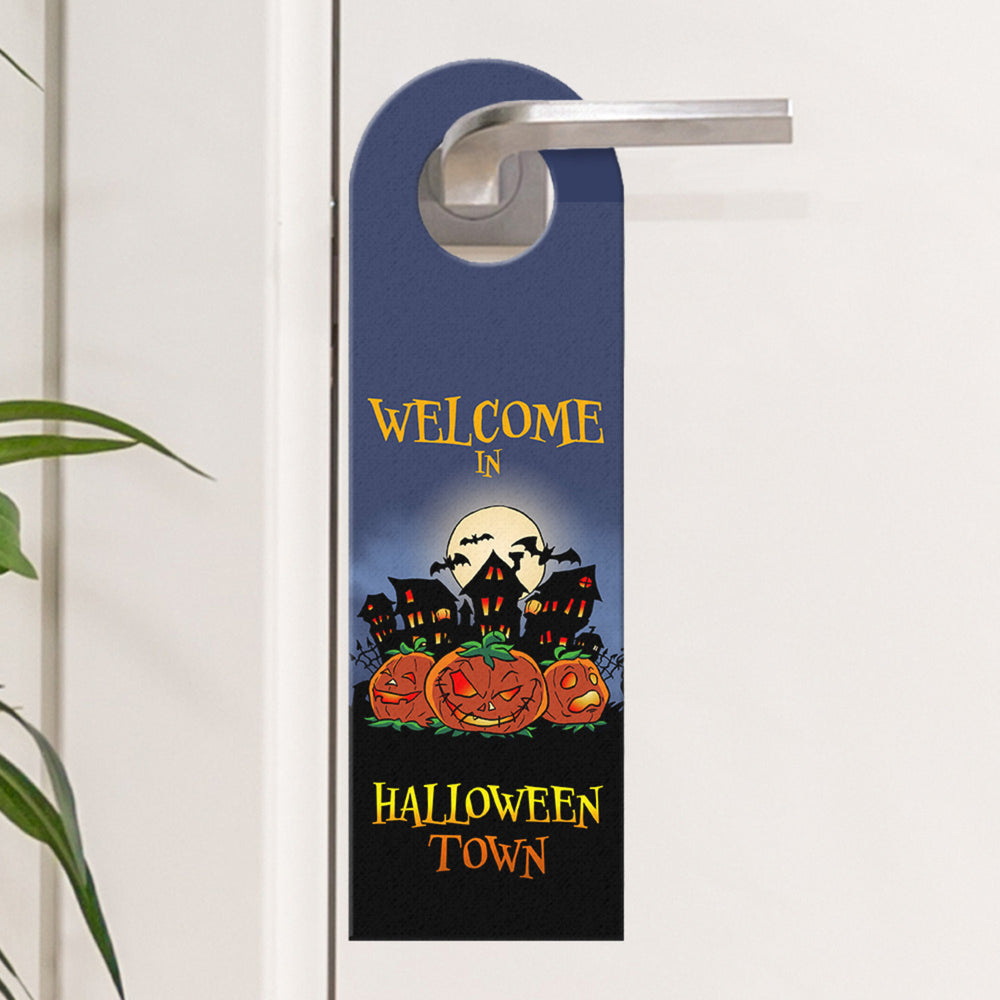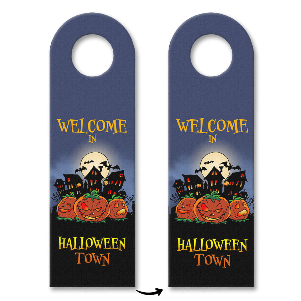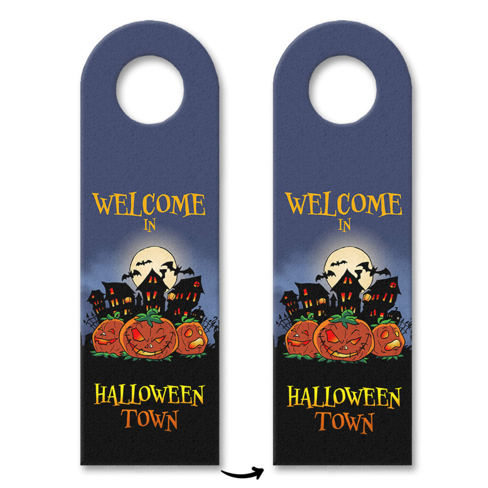 - 1x Türhänger mit gruseligem Motiv und Spruch - Welcome in Halloween Town - in der gewählten Setgröße