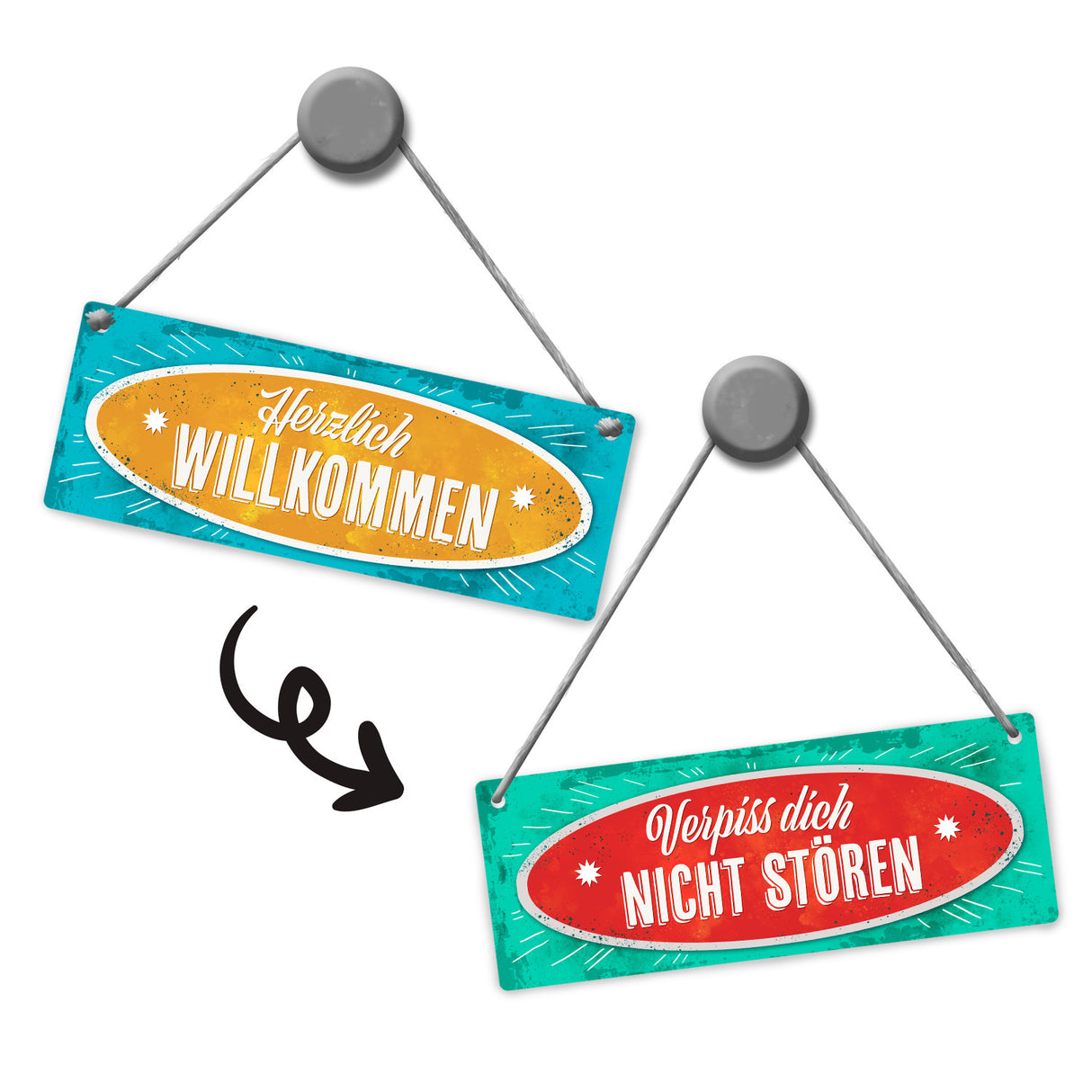 - Lieferumfang: 1x Verpiss dich - Herzlich Willkommen Wendeschild mit Kordel Wendeschild