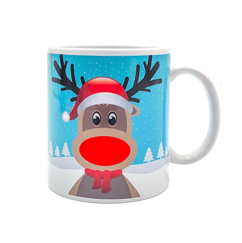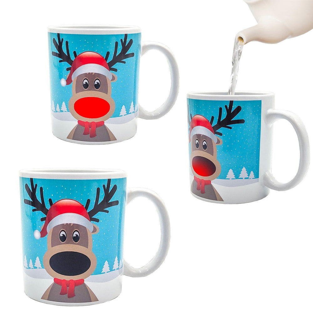 - Dieses Design hat es in sich: Ein buntes Rentier mit Weihnachtsmütze wartet darauf, bei Wärme seine rot leuchtende Nase zu zeigen. Mit 300 ml Fassungsvermögen ist die Tasse aus Keramik der perfekte Begleiter für kalte Winterabende. Ein Muss für alle, die Überraschungen lieben!