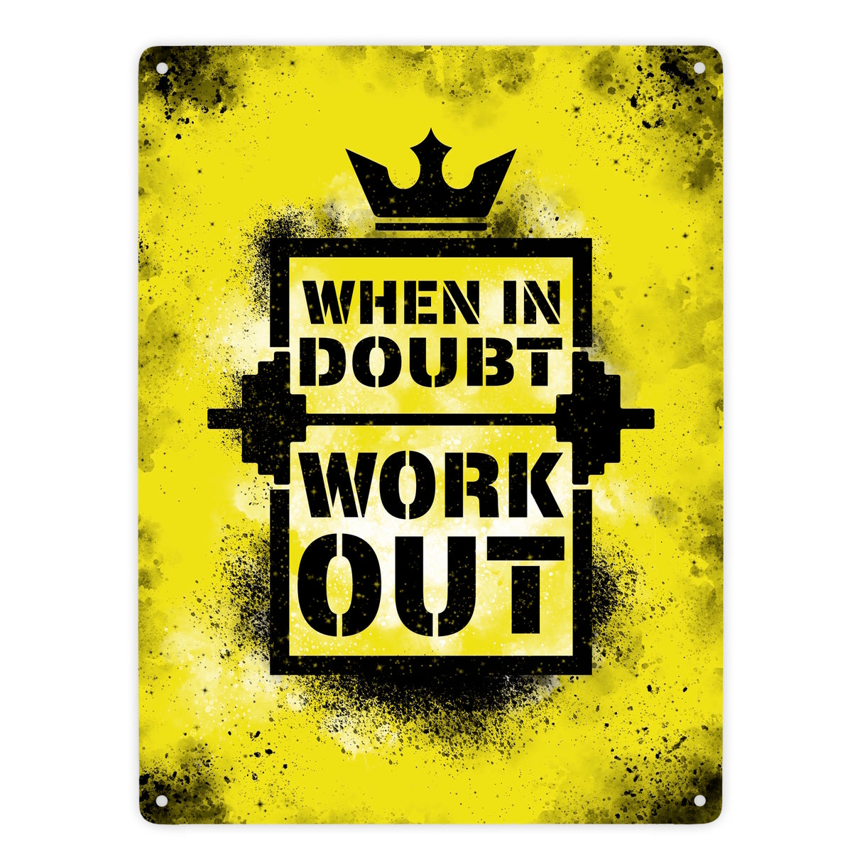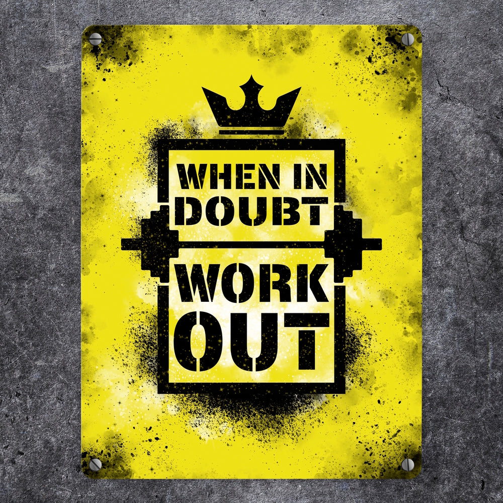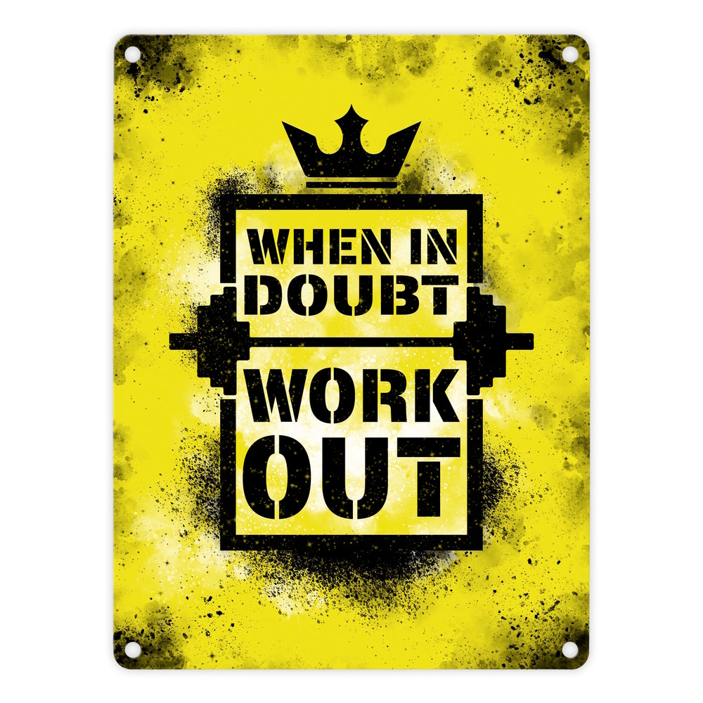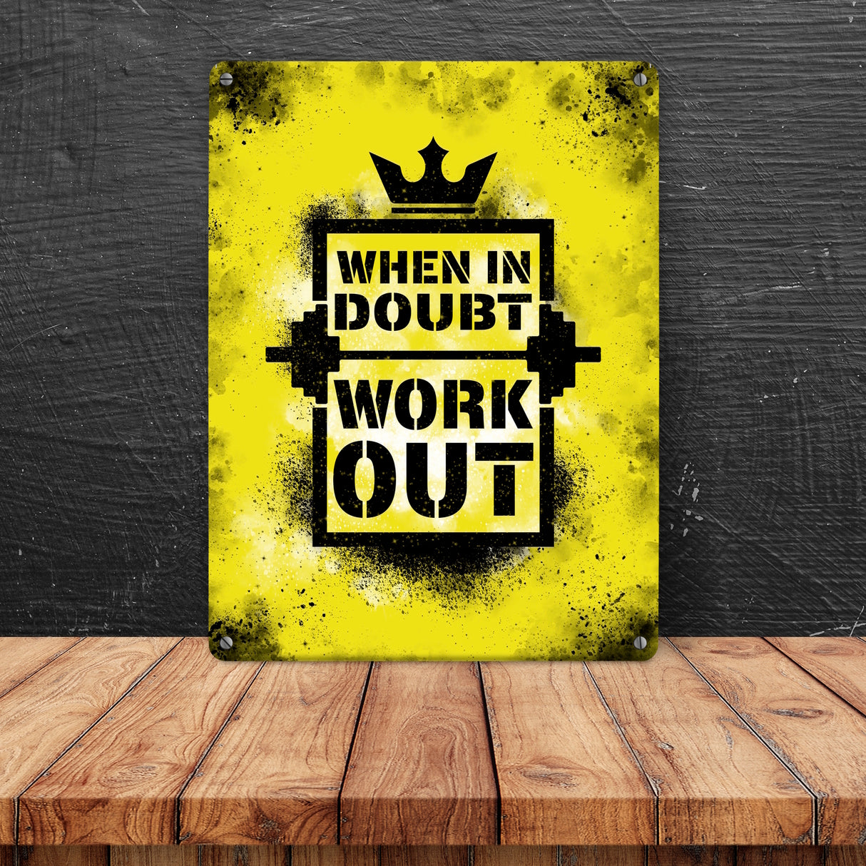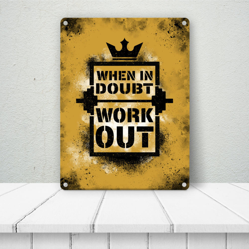 - 1x When in doubt Work out Metallschild mit motivierendem Spruch in {Gelb} in der gewählten Größe
