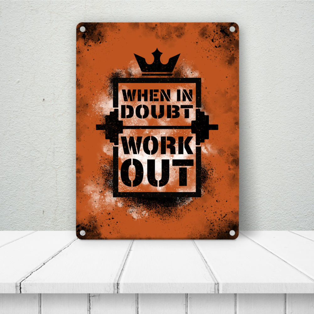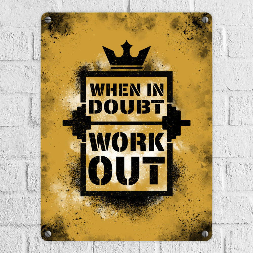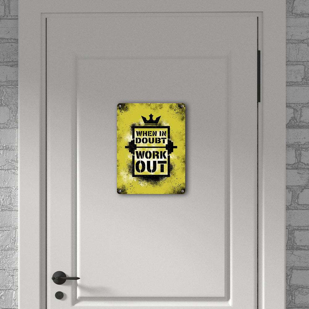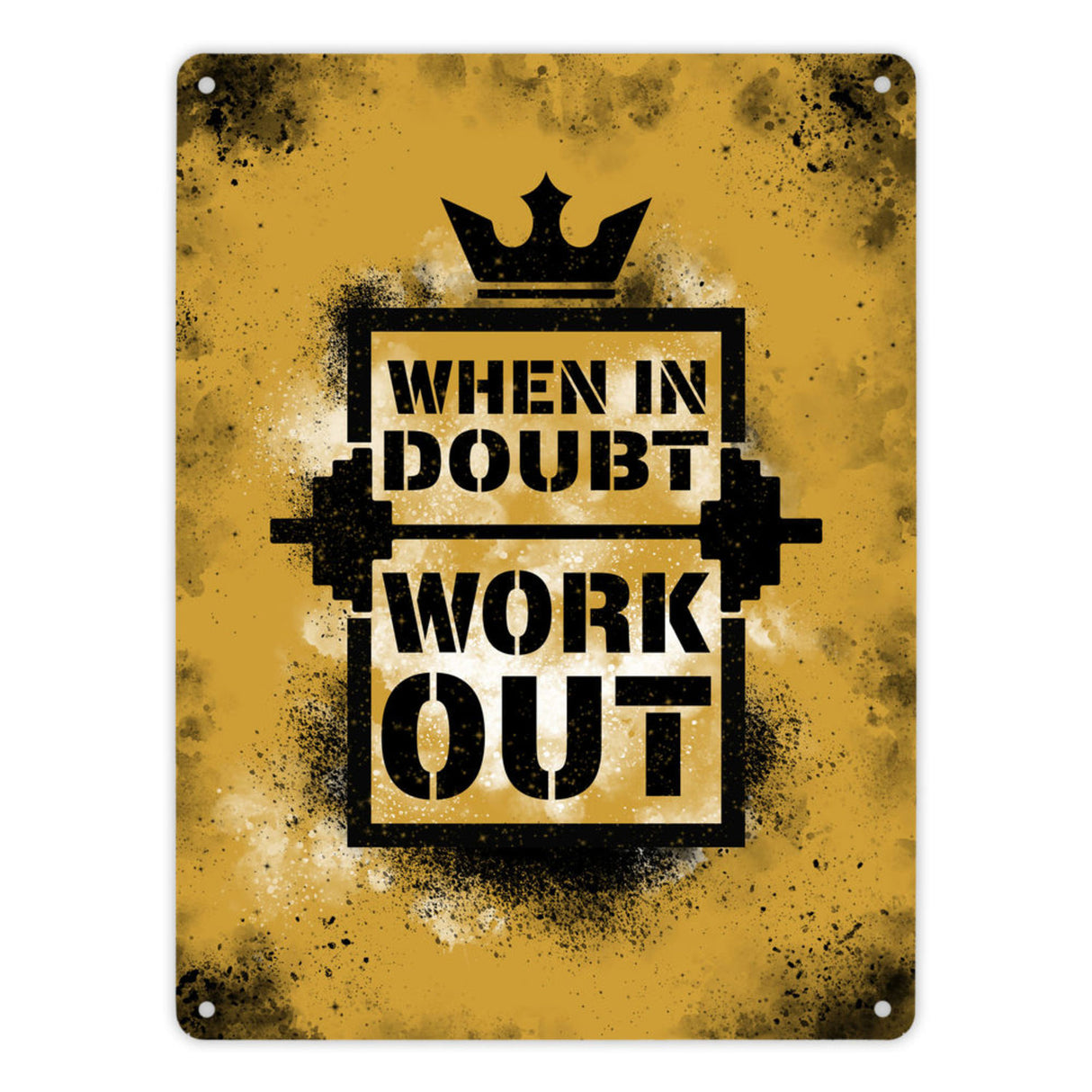 - 1x When in doubt Work out Metallschild mit motivierendem Spruch in {Gelb} in der gewählten Größe