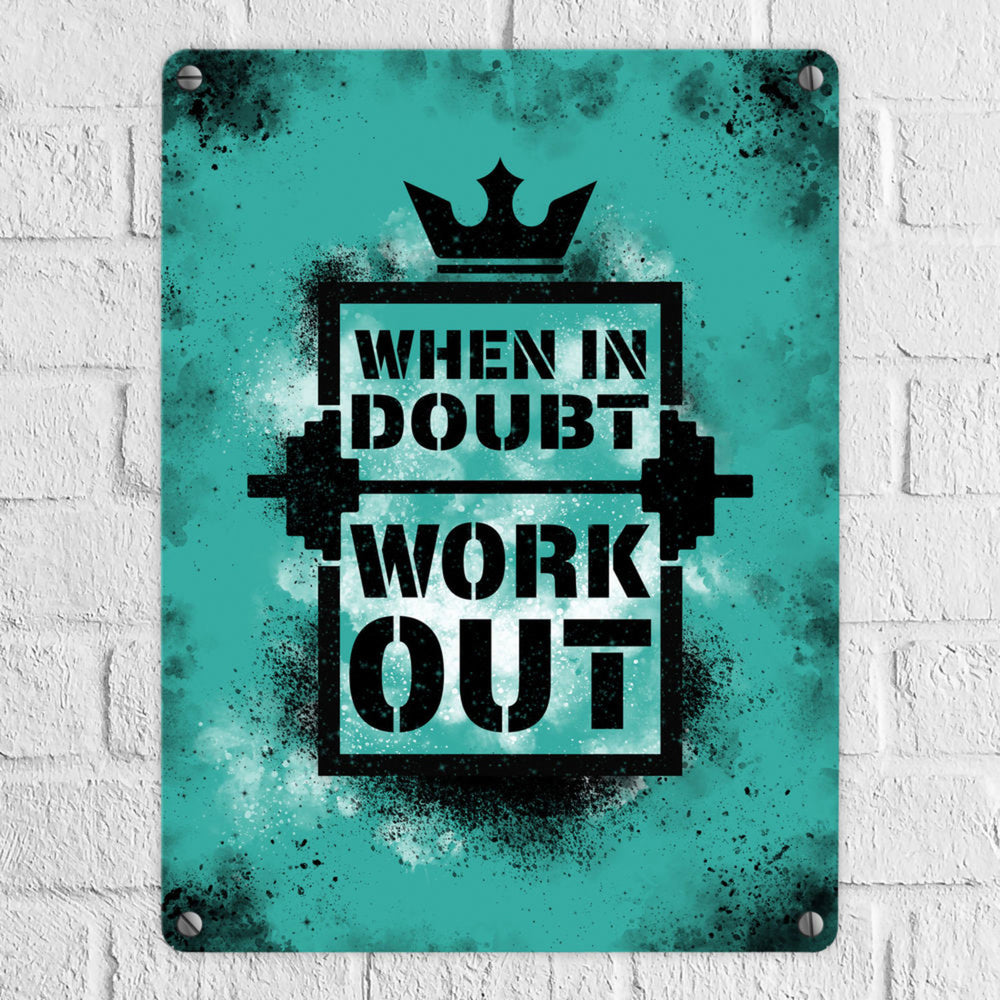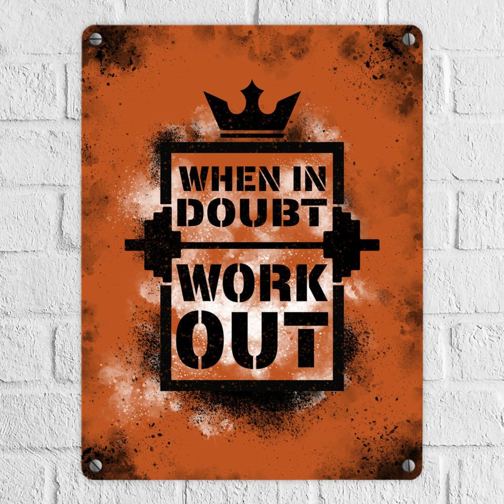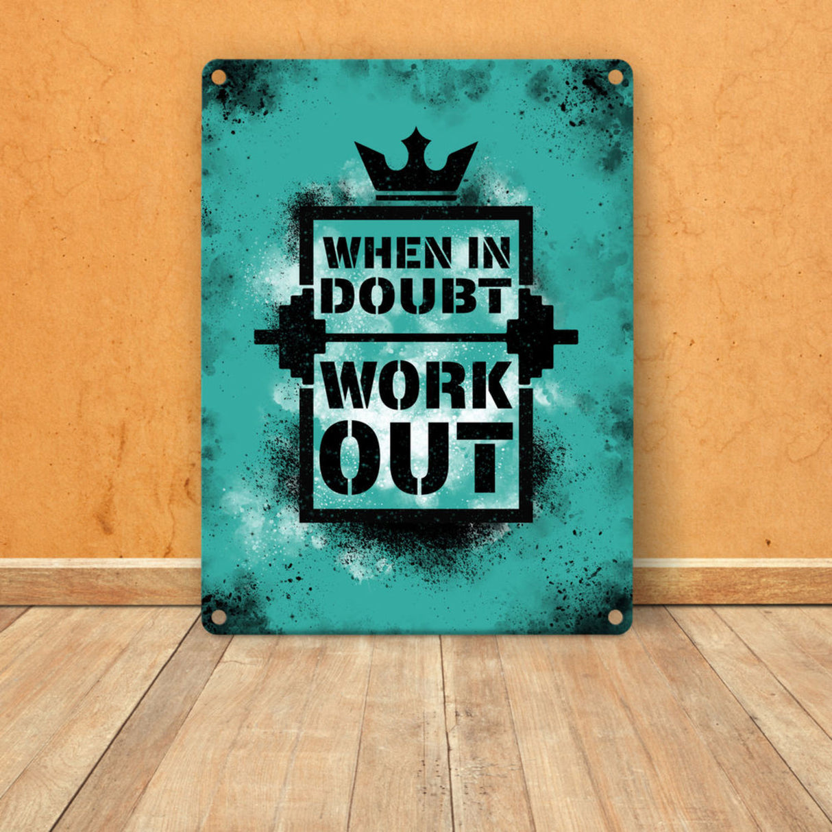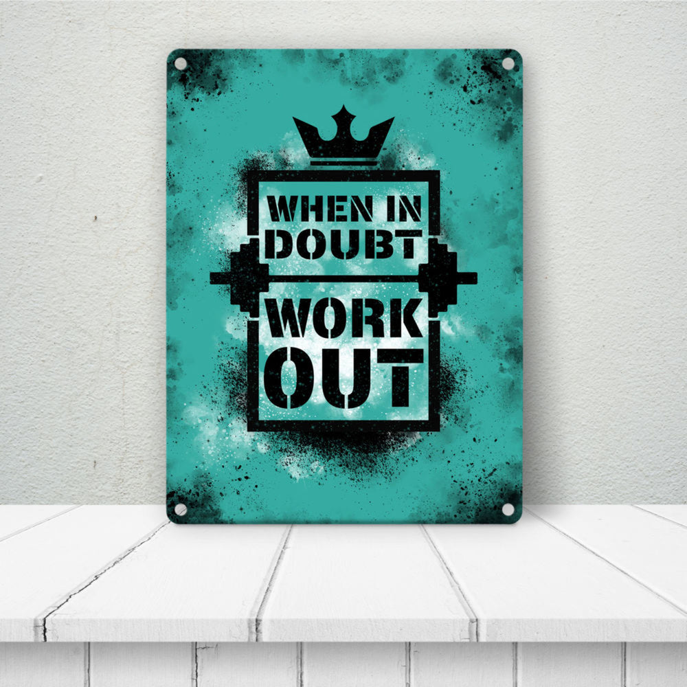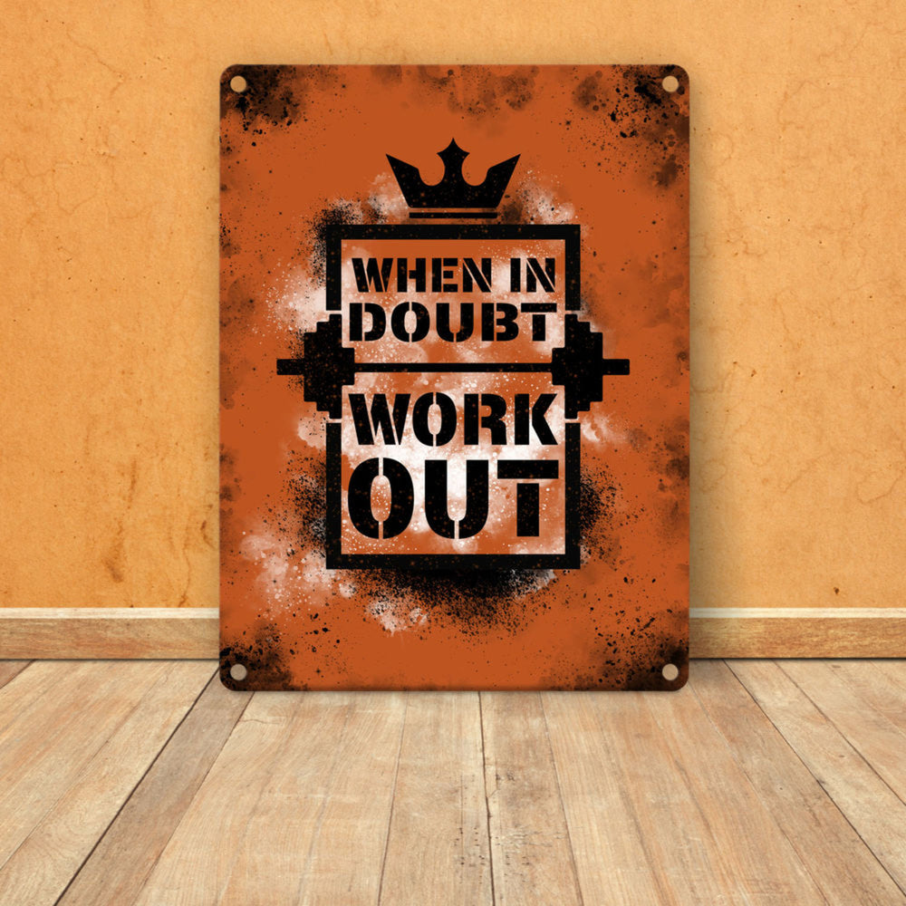 - 1x When in doubt Work out Metallschild mit motivierendem Spruch in {Gelb} in der gewählten Größe