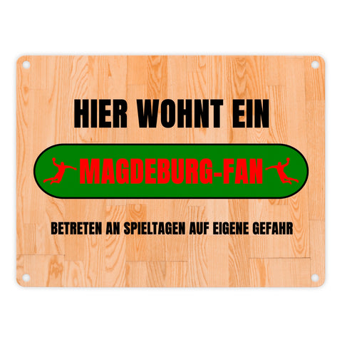 Hier wohnt ein Magdeburg-Fan Metallschild in 15x20 cm mit Turnhallenboden Motiv