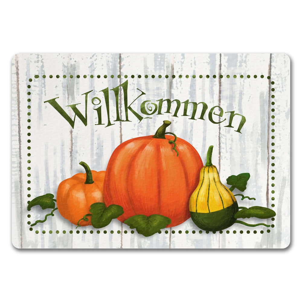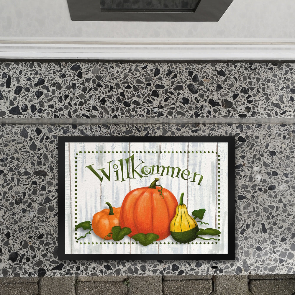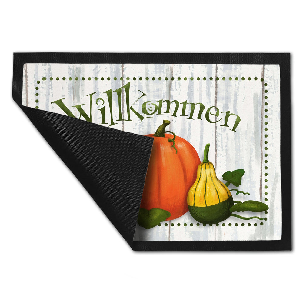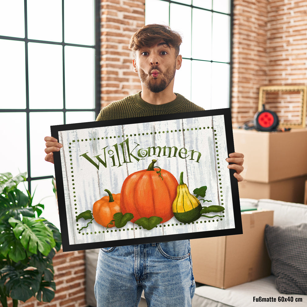 Willkommen Fußmatte mit herbstlichen Kürbissen