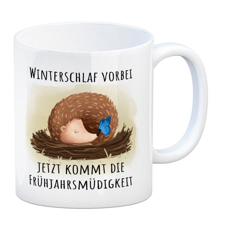 Winterschlaf vorbei jetzt kommt die Frühjahrsmüdigkeit Igel Kaffeebecher