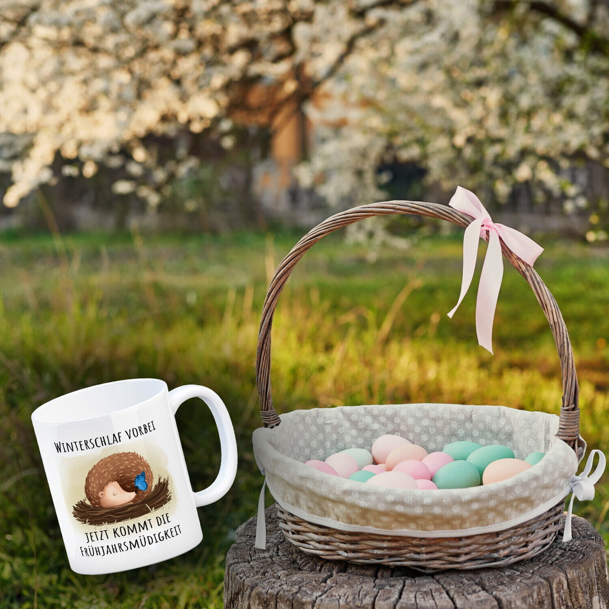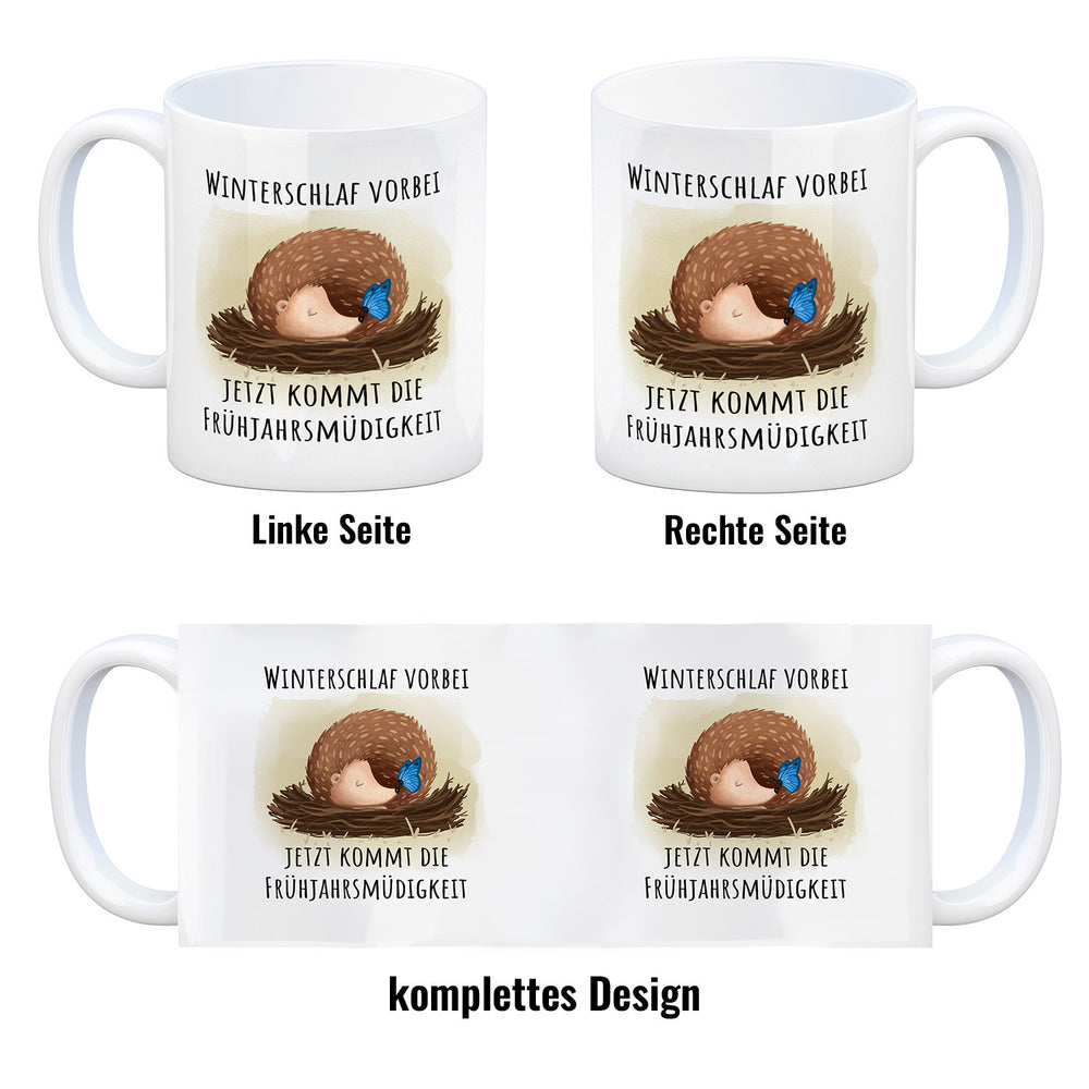 • 1x Winterschlaf vorbei jetzt kommt die Frühjahrsmüdigkeit Igel Kaffeebecher in der gewählten Ausführung