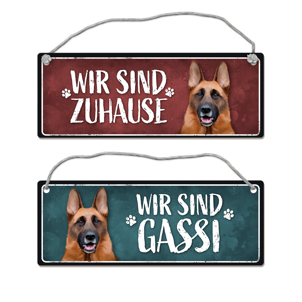 Wir sind Gassi/Zuhause - Schäferhund Wendeschild mit Kordel