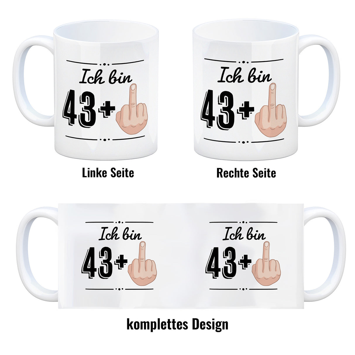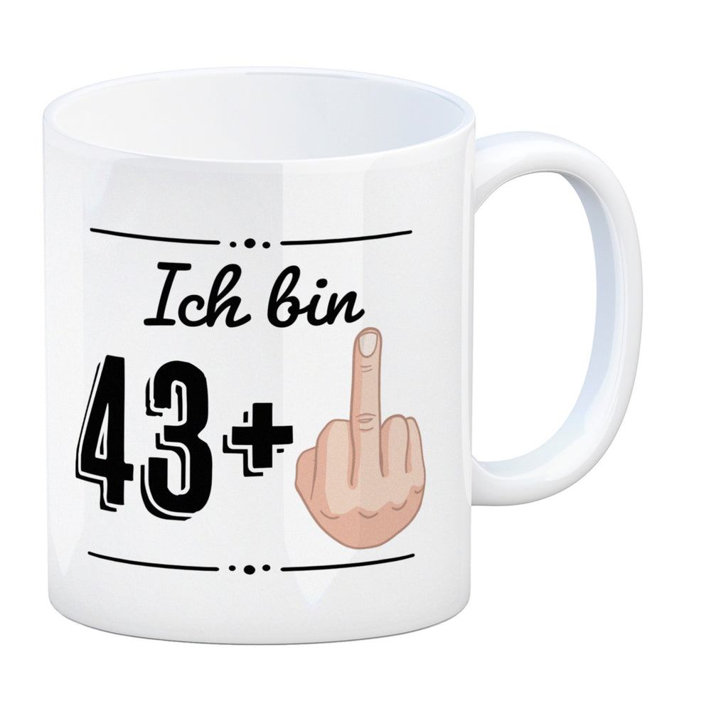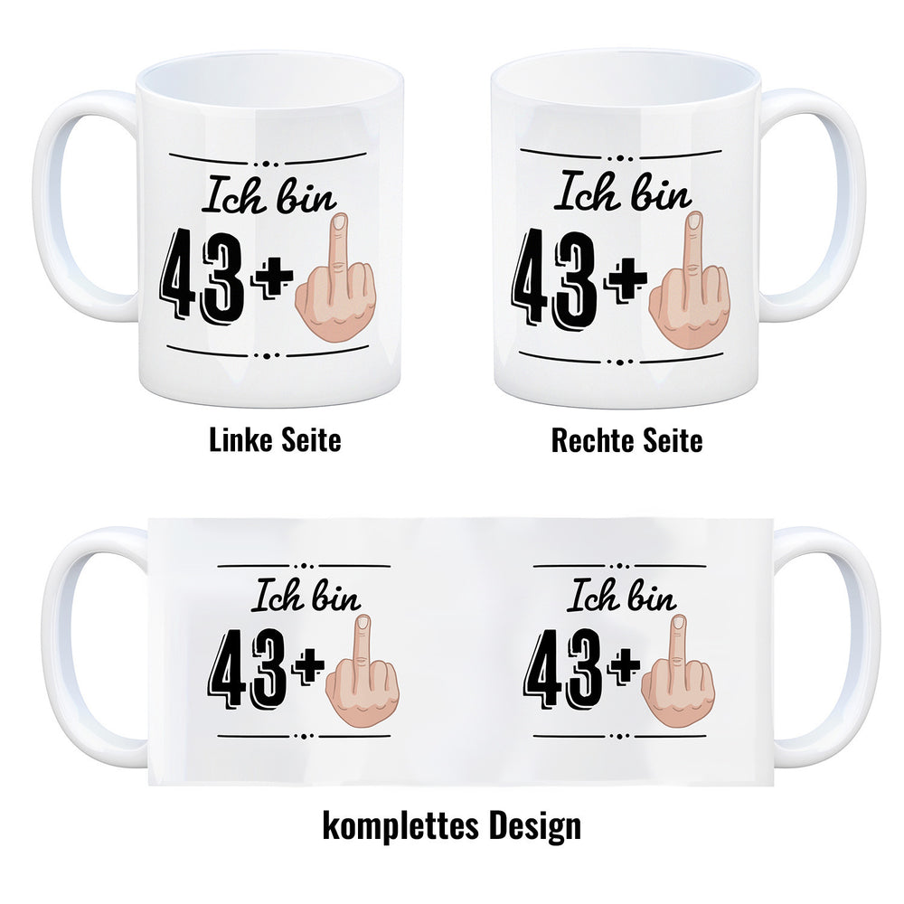- 1x Witziger Kaffeebecher für den 44. Geburtstag mit Motiv: Mittelfinger in der gewählten Ausführung