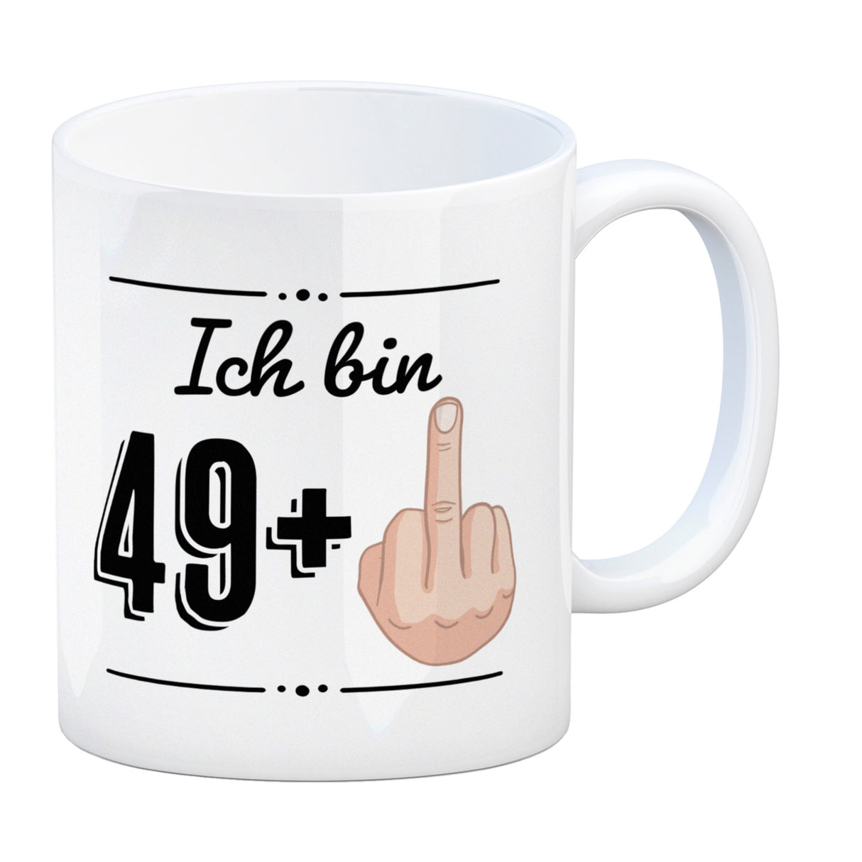 - 1x Witziger Kaffeebecher für den 50. Geburtstag mit Motiv: Mittelfinger in der gewählten Ausführung