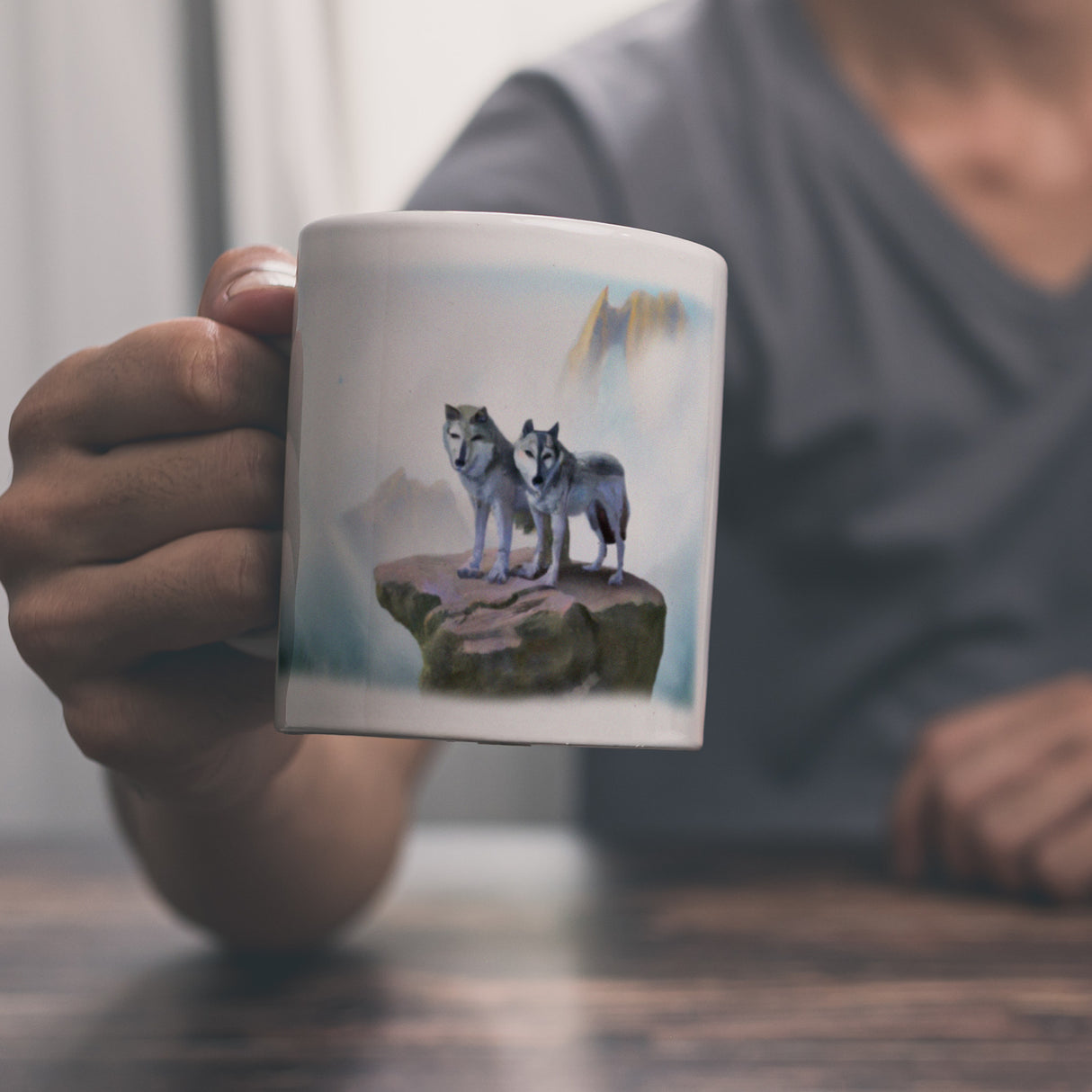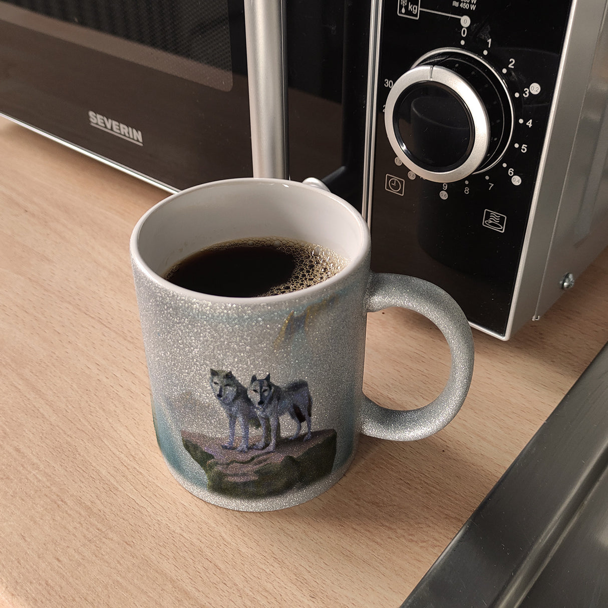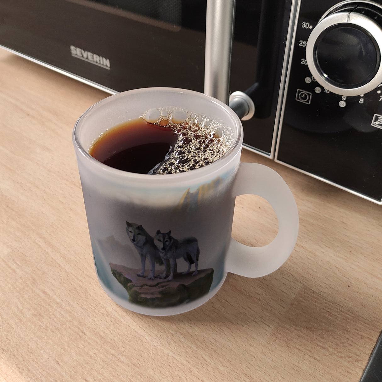 - Der coole Kaffeebecher mit Wolf Motiv ist das perfekte Geschenk für alle die Fans von Fantasy, Mittelalter und Naturmotiven sind. Mit dem einzigartigem Wolfspaar vor nebeliger Kulisse auf der Tasse können Sie einen Einzelgänger oder Wölfeliebhaber zu jedem Anlass überraschen. Der robuste Becher hält sowohl heißen Kaffee als auch kühlen Tee gut warm.
