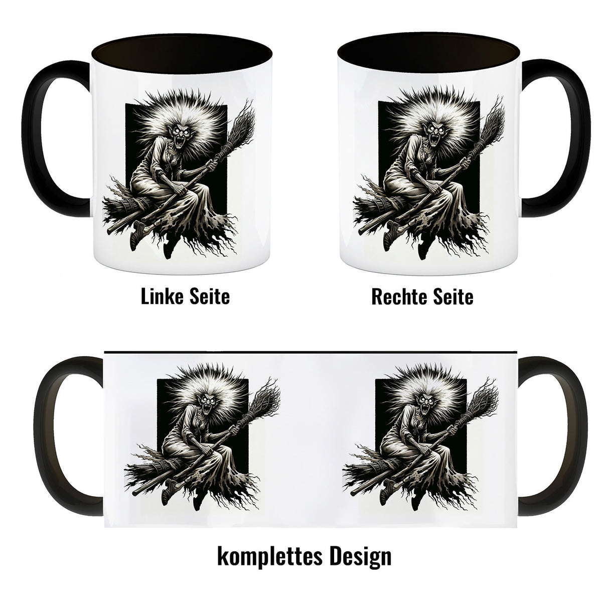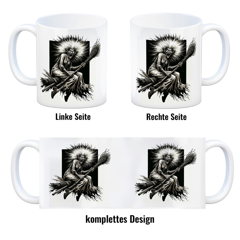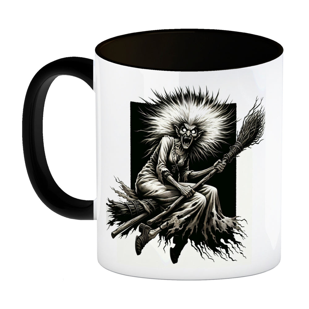 - 1x Wütende Hexe auf einem Besen Kaffeebecher in der gewählten Ausführung