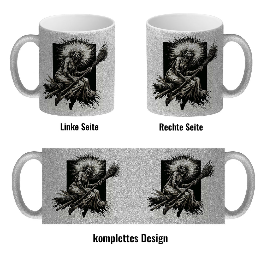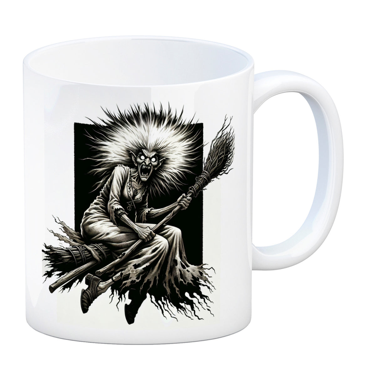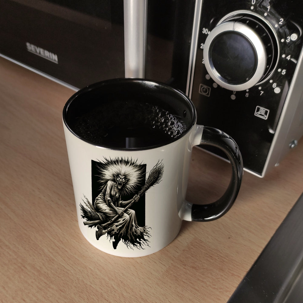 - 1x Wütende Hexe auf einem Besen Kaffeebecher in der gewählten Ausführung