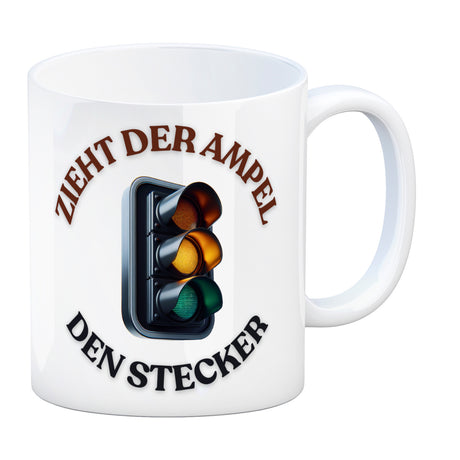 - Hast du genug von gewöhnlichen Kaffeebechern? Hol dir unseren "Zieht der Ampel den Stecker" Becher! Perfekt für Debatten über Verkehrslichter bei deiner nächsten Kaffeepause. Dieses Schmuckstück zeigt eine von Wind und Pech verdrehte Ampel – das Sinnbild für eine abgeknickte Verkehrspolitik!