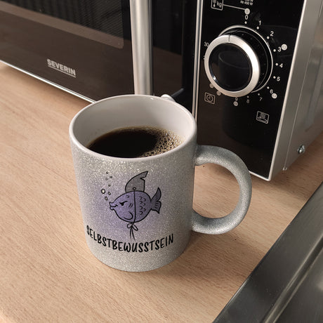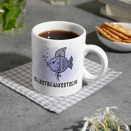 Ab €12,95Grundpreis /Nicht verfügbarAuf LagerSelbstbewusstsein - Kaffeebecher mit dem gewitzten Fisch mit Haifischflosse