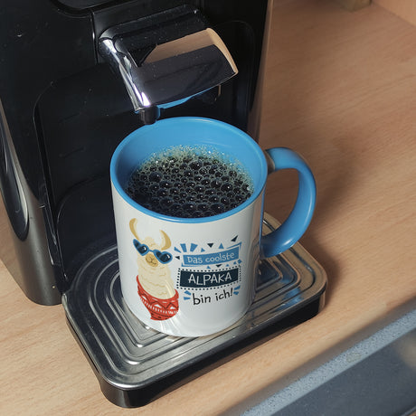 Kaffeebecher mit Hahn Motiv und Spruch: Ich krähe so lange ich will!
