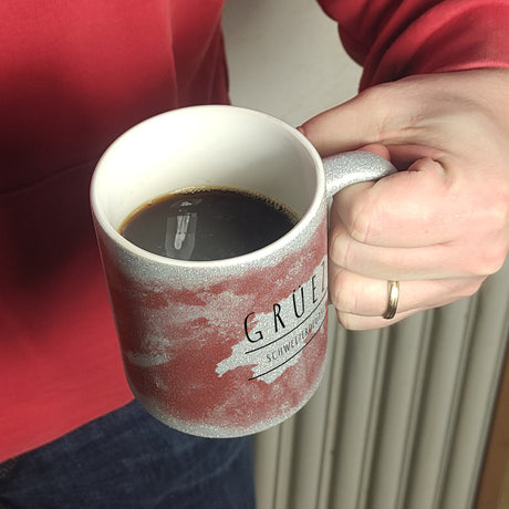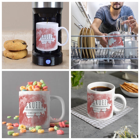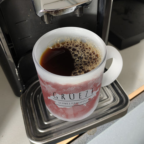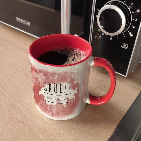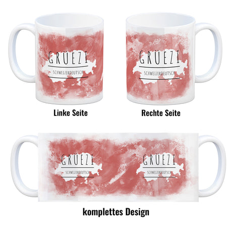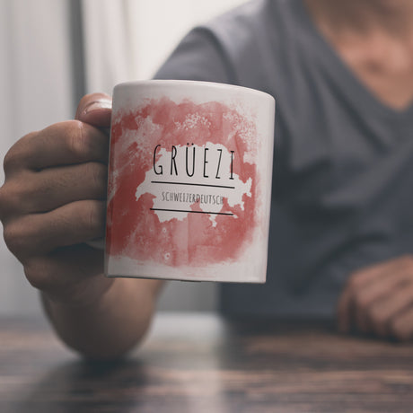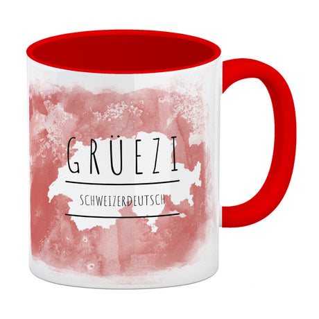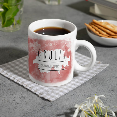 Ab €12,95Grundpreis /Nicht verfügbarAuf LagerHallo auf Schweizerdeutsch Grüezi lustiger Kaffeebecher mit rotem Hintergrund