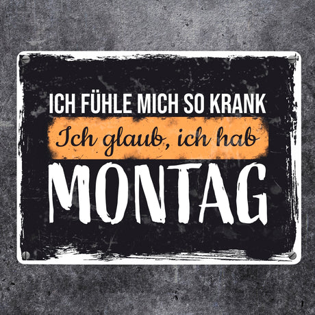 Ich fühle mich so krank ich glaub, ich hab Montag Metallschild