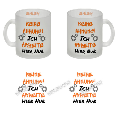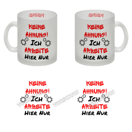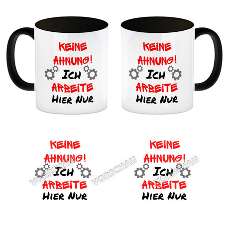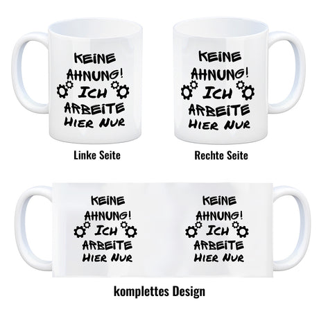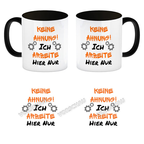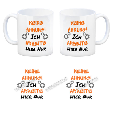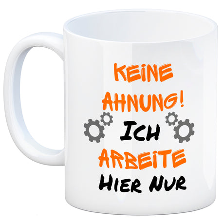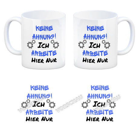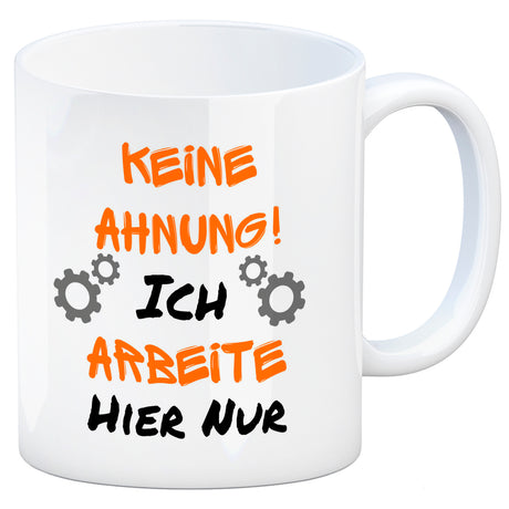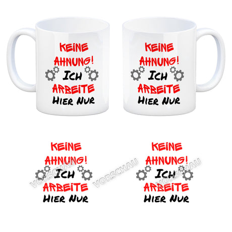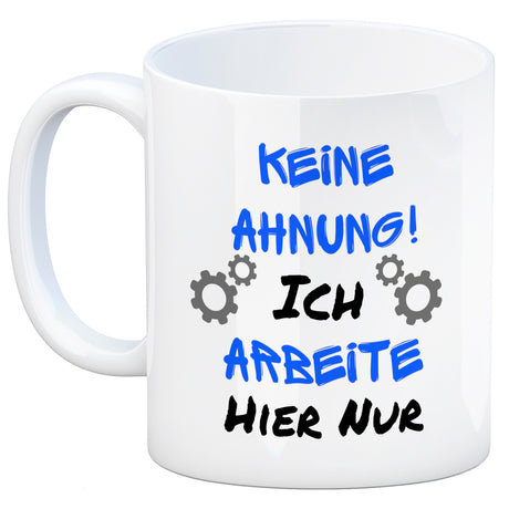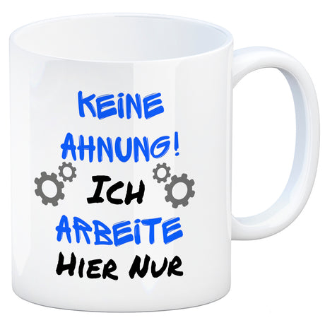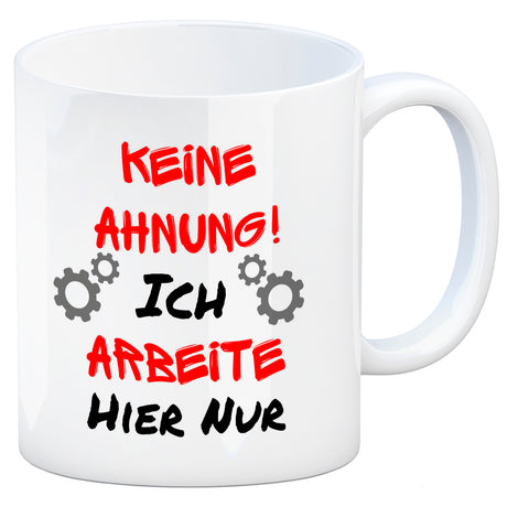 €12,95Grundpreis /Nicht verfügbarAuf LagerKeine Ahnung! Kaffeebecher mit Spruch Ich arbeite hier nur