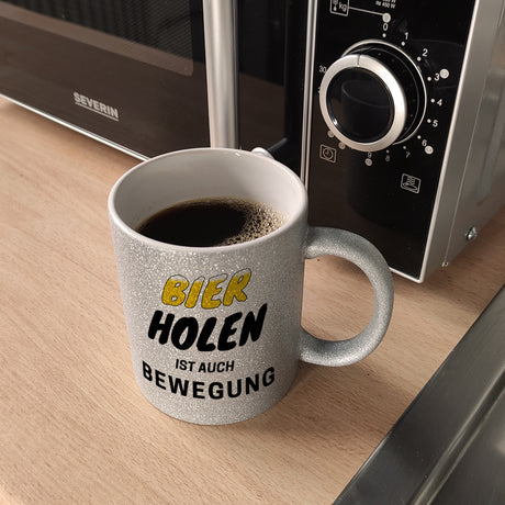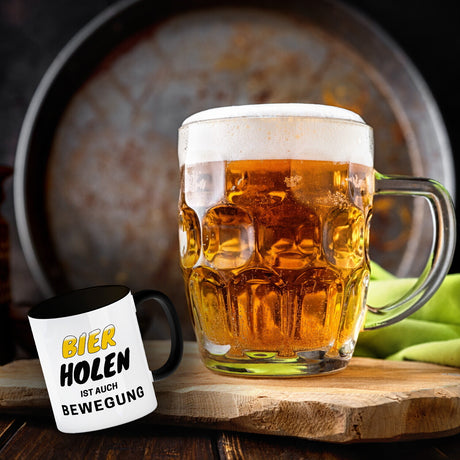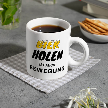 Bier Kaffeebecher mit Spruch - Bier holen ist auch Bewegung