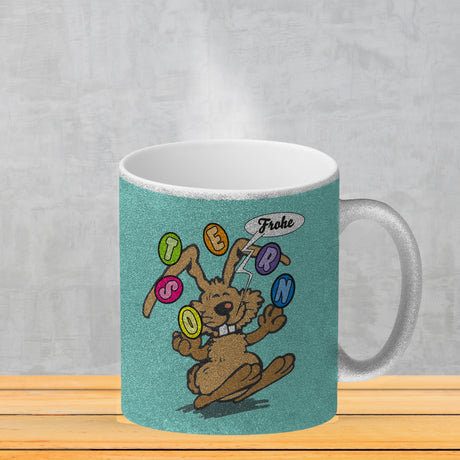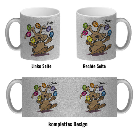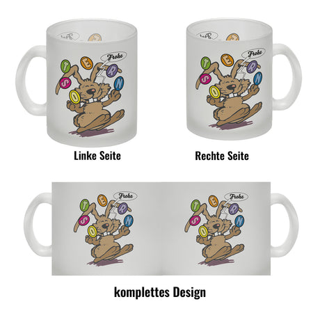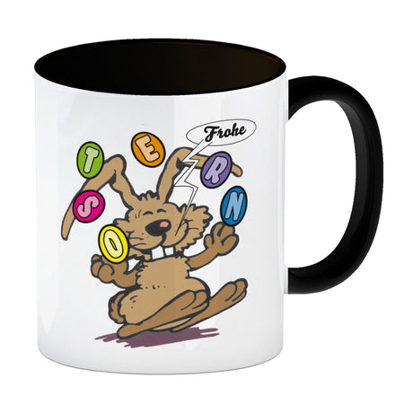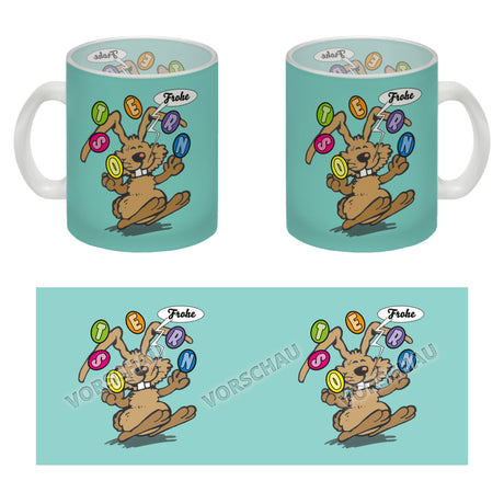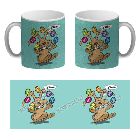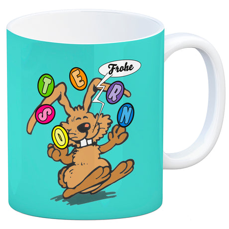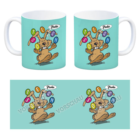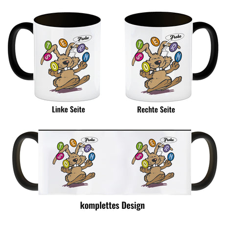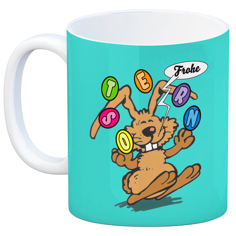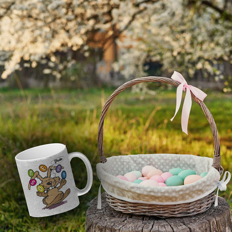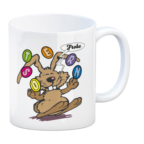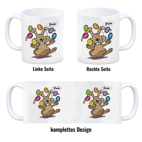 €12,95Grundpreis /Nicht verfügbarAuf LagerFrohe Ostern! Osterhase jongliert mit Ostereiern Kaffeebecher in {weiß}