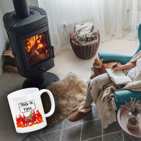 Ab €12,95Grundpreis /Nicht verfügbarAuf LagerThis is fine Kaffeebecher Hund in brennendem Wohnzimmer