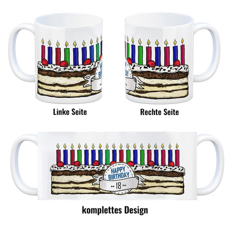 Ab €6,95Grundpreis /Nicht verfügbarAuf LagerGeburtstagstorte Kaffeebecher zum 18. Geburtstag mit 18 Kerzen